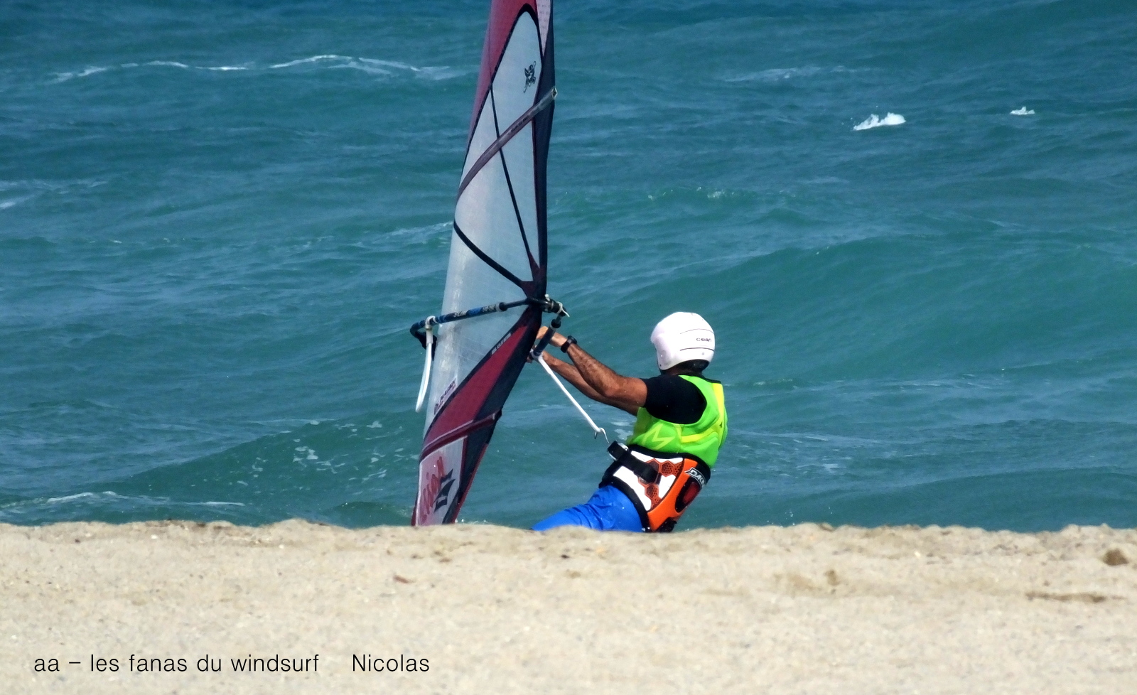 Lundi,St Cyprien. Ce matin le vent était au nord-est et les vagues aussi, j'ai un doute ais nous allons quand même à St Cyp. Le vent est tellement light!!!les vagues ne sont pas énormes mais assez pour annuler le peu de vent d'est donc plein onshore. Nicolas va arriver à faire quelques bords au prix de moultes efforts, c'est beau la jeunesse!!! et çà va faire quelques moves sur saSeaLion mais trop onshore malheureusement. Petit Lucky regardes tout çà de loin...mais qu'est ce qu'y font.......