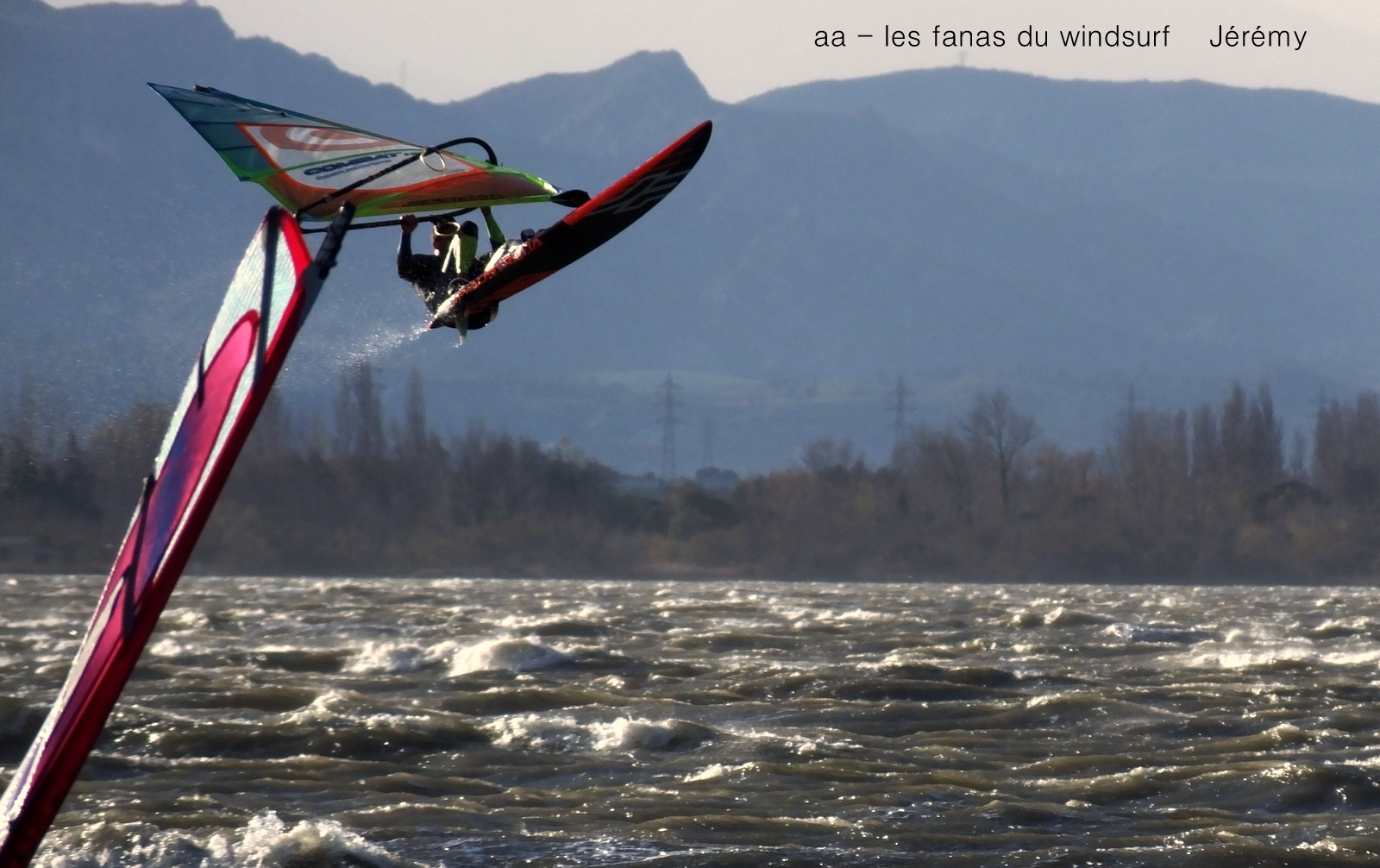 Mercredi,Coudalère. Depuis le temps!!! on en rêvait, on a eu peur que cela n'arrive pas, mais aujourd'hui c'était la fiesta. Enfin une session digne de ce nom à Coudalère! Peut être pas d'anthologie mais du vrai. Toujours irrégulière la tram...enfin le vent d'ouest quasi sud-ouest par moments. Il fallait entre 3.3 et 4.2, pour moi 4 j'aurais pu avoir moins mais il etait trop tard pour changer.Beau soleil (pauvre Toutoune contre jour plein les yeux!!!) et températures tout à fait supportables. Avec Jérémy en homme volant , une demie-heure de nave et 3 vols, superbe.