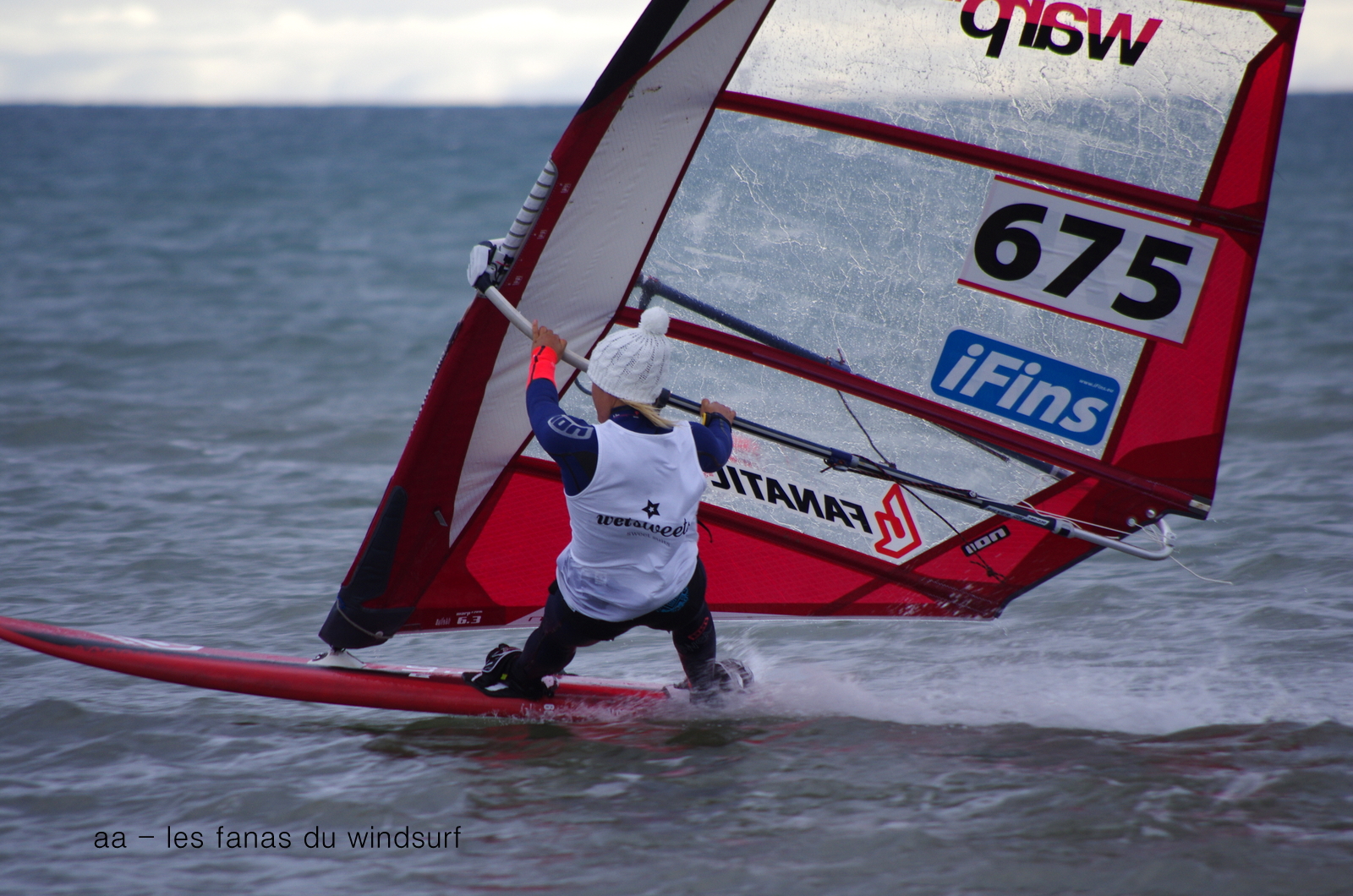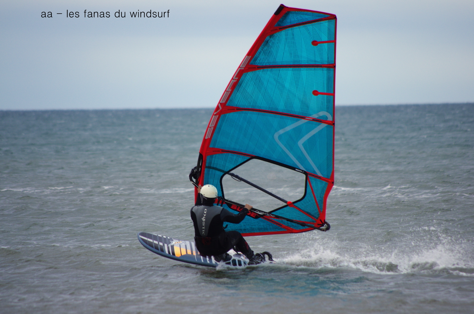 Dimanche,PLN. Aujourd'hui changement d'heure...check... on va en profiter pour se régaler d'une tramontane bien établie à 25-30 noeuds pendant 3 heures. Il fait gris et froid, mais au cours de la journée des rayons de soleil vont donner de magnifiques couleurs. Beaucoup de monde aujourd'hui avec une session slalom entre Marion Mortefon et Estelle Barre. Vers 13h30 le vent se calme et même dégringole, j'y retourne un peu mais c'est trop faible pour ma 5ms ceux du matin s'en vont les autres continuent.