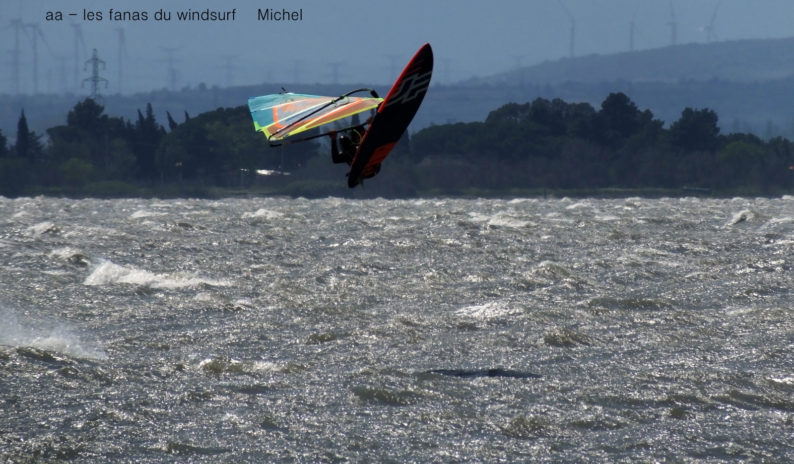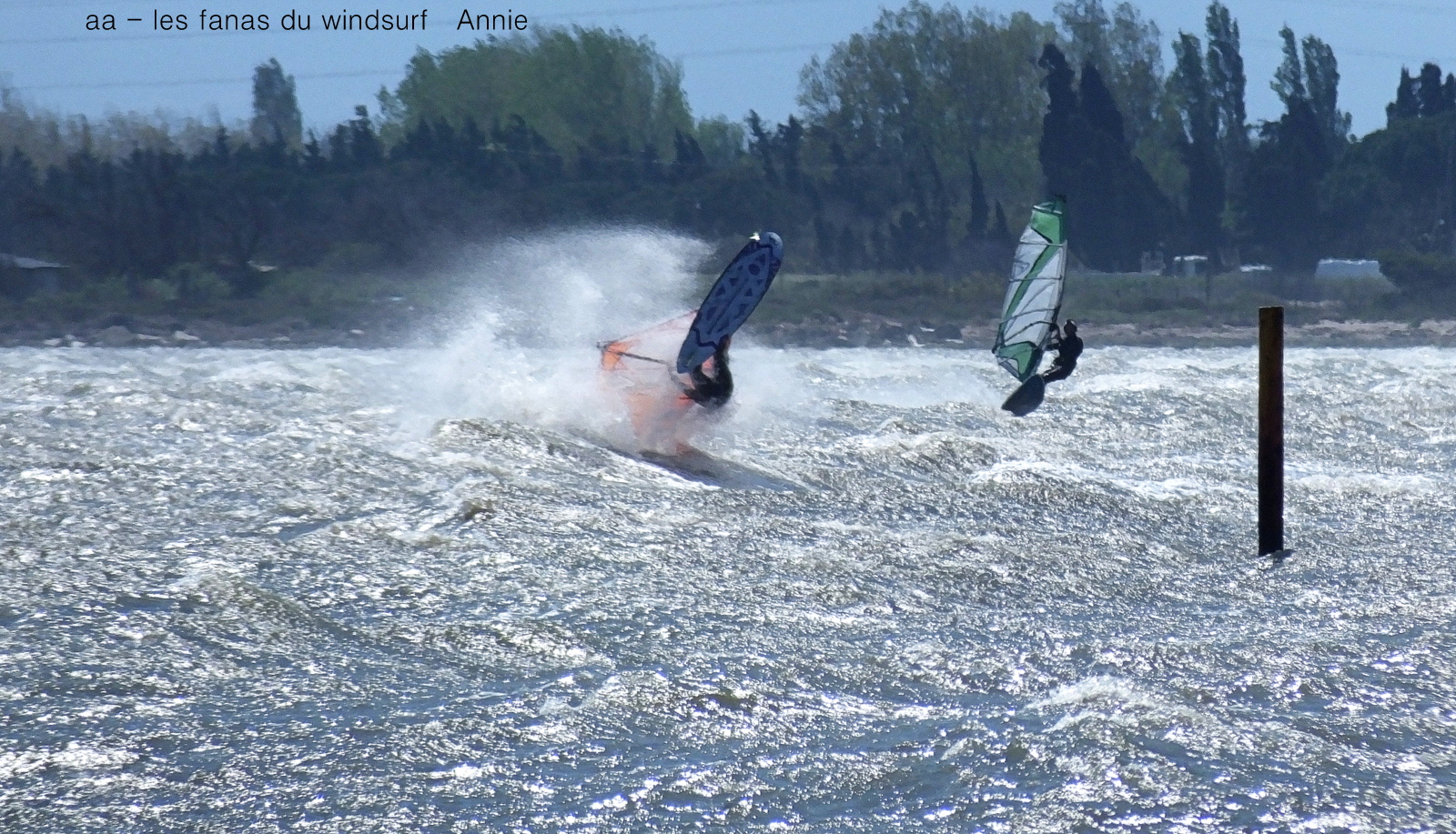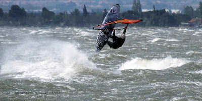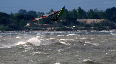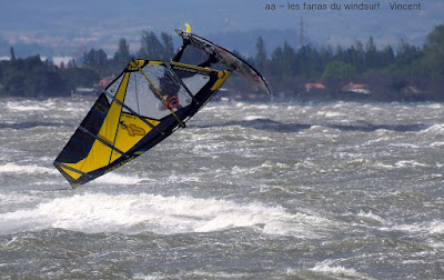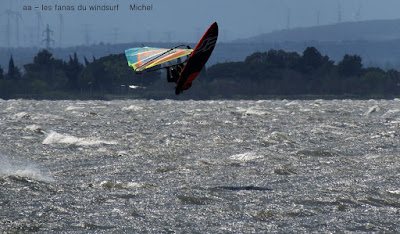 Dimanche, Coudalère. Baston prévu ok on reste à Couda. Dés le matin le vent est assez nord et cela ne va faire qu'empirer avec les rafales, les déventes etc, assez dangereux en fait et Jean-Luc en a payé le prix nous lui souhaitons un bon rétablissement.Trés imprévisibles les rafales sont dévastatrices surtout quand elles vous prennent à contre. Pas mal de monde mais moins sur l'eau. Le matin un magnifique arc en ciel ne nous a pas quitté pendant une heure incroyable, le ciel est sombre et va se dégager en cours de journée. Nous en profitons pour souhaiter également un bon rétablissement à Olivier dit "Kurgan" qui s'est blessé hier sur les bancs de sable de Gruissan.