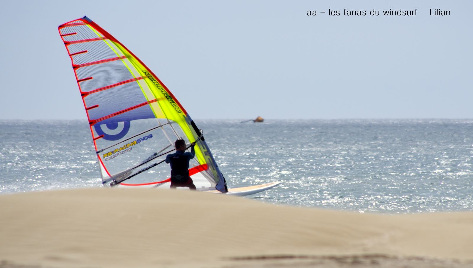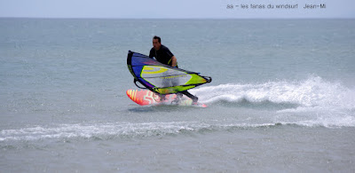 Samedi, PLN. Le vent était assez fort trés tôt le matin mais en fait il va se renforcer vers 11h00 au point de changer à nouveau de voile. la valse des voiles aujourd'hui, 4,7,5.5,4.7 il aurait fallu remettre 5. 5 à 15h30 mais là c'était bon. Une bonne ambiance et un paysage magnifique avec la formation de dunes toujours photogéniques. Pas mal de monde mais moins que prévu, ciel gris le matin , grand bleu l'après midi, frais le matin,chaud l'après midi.Couleurs changeantes et plan d'eau un peu clapoteux, Lucky à fond toute la journée, c'était une session à PLN.