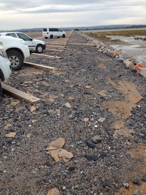 Vendredi. L'eau commence à se retirer mais à PLN çà laisse des traces... le beau parking tout neuf.... qui a coûté une blinde au contribuable, à nous quoi, c'était prévisible mais ils ne l'avaient pas prévu, cqfd.