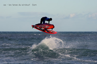 Mercredi,La Franqui. Quelle drôle de journée, on était parti tôt pour le Rouët, belles vagues mais 10-15 noeuds, trop peu, direction PLN, zéro vague zéro vent zéro quoi. Nous décidons de passer par La Franqui. Nico Akgazciyan et Sam Estève ont gréé mais le vent est faible. On part jouer avec Lucky et au bout d'un moment le vent se met à souffler, assez fort même, Sam arrive puis Nico, j'ai l'appareil en main et je mitraille ce superbe spectacle sans penser au reste, quand je me décide enfin à retourner à la voiture pour gréer il est déjà trop tard, valse hésitation...C'est à ce moment là que Wesh-Wesh est arrivé, lui il n'a pas besoin de vent!! il est le vent! Toutoune va prendre les photos et je décide d'y aller quand même mais non çà ne le fera pas un petit planing au large puis plus rien, le surf sailing c'est pas trop mon truc....