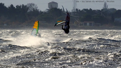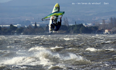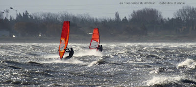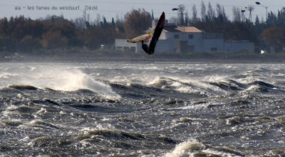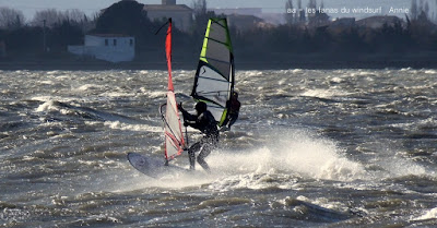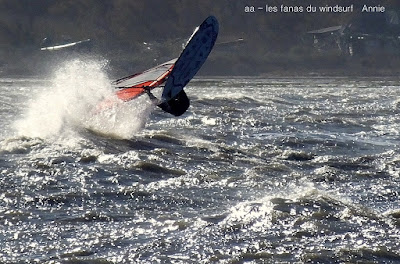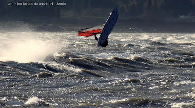 Samedi, Coudalère. Motivés!!! et là il fallait l'être, un froid transperçant, un vent trés fort , nord (grrrrr), rafaleux, violent, l'eau je préfére ne pas en parler , et pourtant il y avait pas mal de monde. Le plan d'eau était bien formé avec de belles rampes mais pas facile à sauter en babord ,nord oblige. Par contre le niveau est descendu, un truc de dingue , je me suis pris un banc de sable qui m'a mis en difficulté en pleine période d'embruns, je n'y voyais rien, cela m'a pris du temps pour pouvoir repartir le banc de sable était gigantesque, là dessus Sebastiou venu à ma recherche se l'ai pris plein gaz, deux ailerons partis, Dédé et Didier on dû lui apporter vis et tournevis. Tout çà dans cette eau glaçée, merci encore Seb.Je suis partie assez tôt ayant vraiment été dans l'impossibilité de me rechauffer, mais j'en avais assez, dire que les températures vont encre descendre....