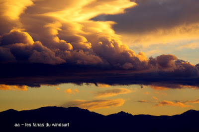 Dimanche,Coudalère. Il est tard je sais mais çà valait le coup avec des photos au coucher de soleil inoubliables et les sauts incroyable de Jérémy Amsellem, une tempête qui a commençait avec un peu de retard avec au début un vent trés irrégulier et tout le monde avait gréé trés petit donc pas facile. Je vous laisse là, encore du boulot sur facebook, j'y reviendrais demain matin.