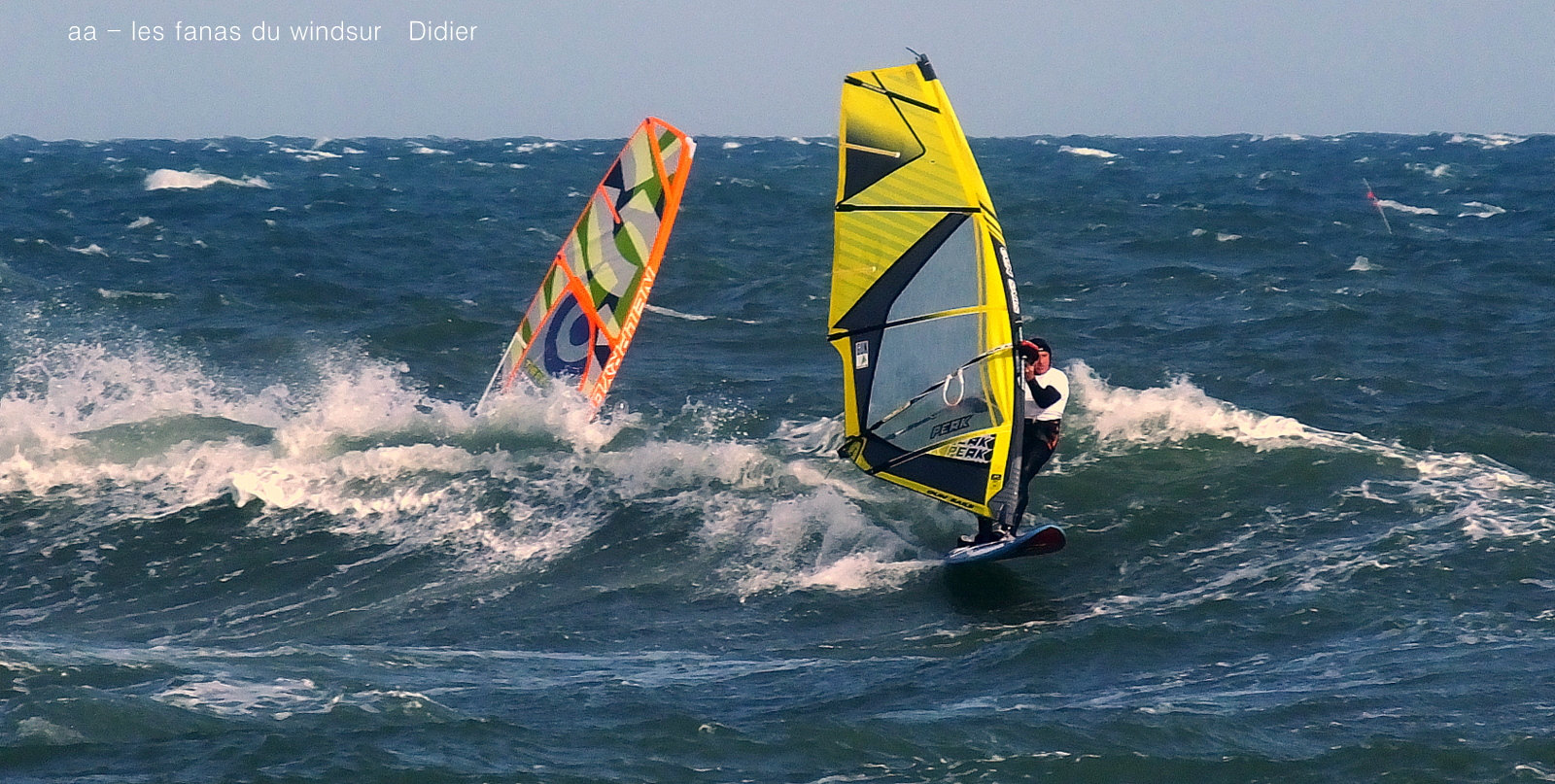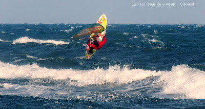 Vendredi, Barcarés. Encore une fois le marin va avoir du mal à passer sur le sud, on attend pendant 3 heures à St Cyprien pour le bonheur de Lucky mais il faut se résoudre à repartir vers le nord direction Barcarés. Bonne décision, le vent est là pour 4.7, un peu juste au début, je fais l'erreur de prendre ma grosse planche mais çà va passer jusqu'au bout malgrés le clapot toujours présent. Belles vagues, le vent va se renforcer, tout le monde est là pour en profiter. Cà fait du bien d'avoir du marin après toutes ces sessions de tram, en plus avec le soleil. Un petit mot pour Toutoune qui a fait ces belles photos, caché dans les rochers alors qu'il n'est pas en grande forme.