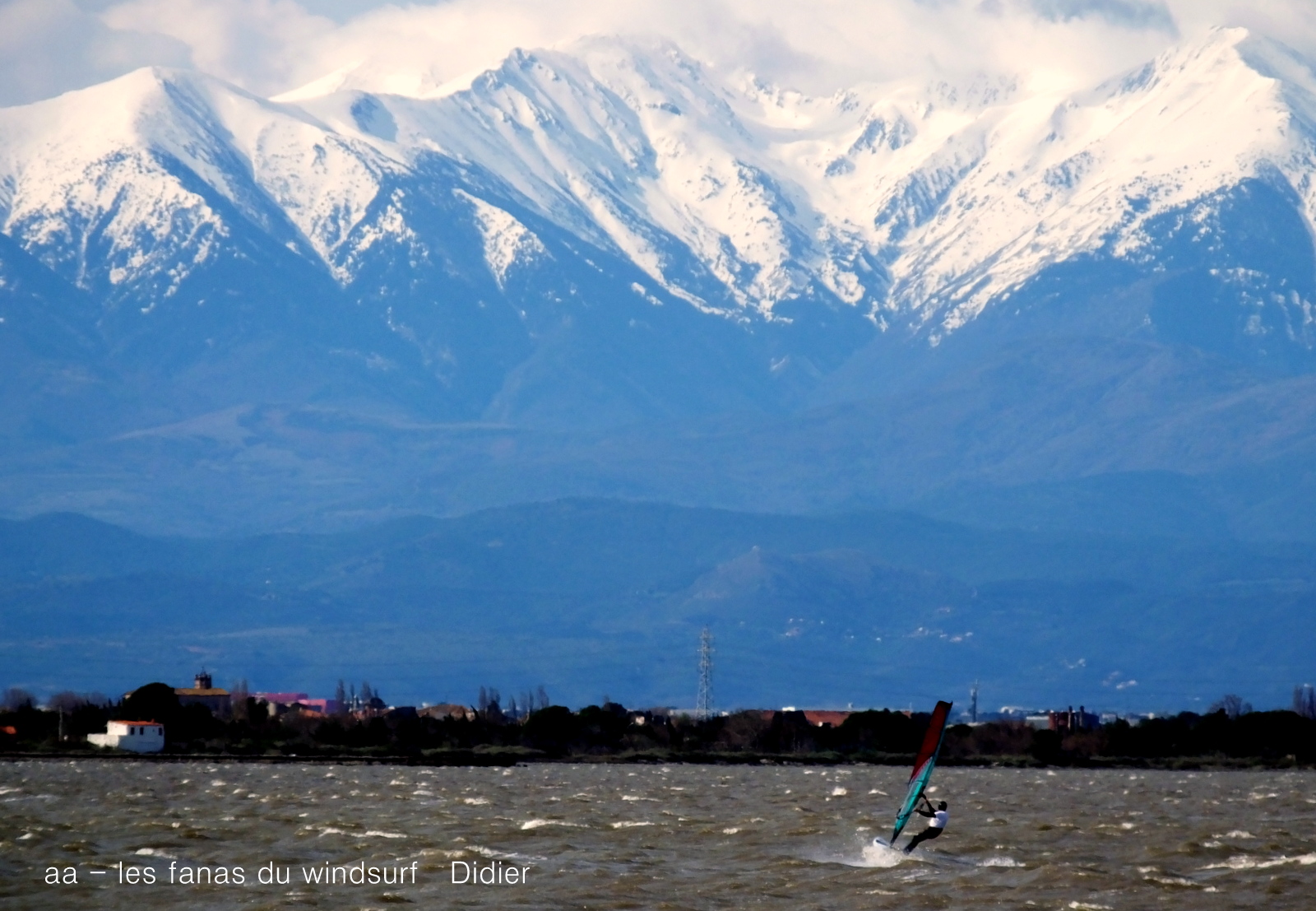 Mercredi Coudalère. Déjà hier soir mal partout, aujourd'hui on repart tôt puisque soit disant le vent va tomber. Comme toujours c'est une fausse info pour te faire lever tôt. Résultat à 14h00 j'étais cuite, quand on commence à ressentir les douleurs en naviguant c'est qu'il est temps de s'arrêter.Nous avons eu droit à une belle session lêve tôt, puis les conditions se sont un peu dégradées, nord, clapot, irrégulier, perso j'étais limite overdose. Demain on ira peut être voir ailleurs si l'eau est plus bleue ce dont je ne doute pas lol.