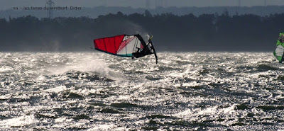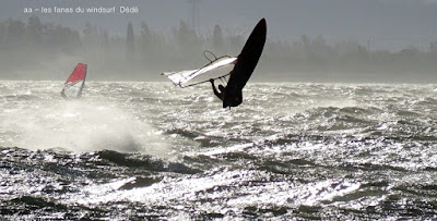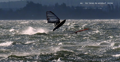 Vendredi, Coudalère. Premier jour du cycle annonçé, une vraie grosse tram. C'est vrai qu'au début on a beaucoup douté, certains ont attendu, d'autres on gréé la voile adéquate, pour ma part une 4 m en attente et une 4.4 gonflée en attendant. Pour tout dire j'aurais dû mettre une 3.7 en attente et même une 3.3, car quand le vent est arrivé, vers 15h00, c'était du vrai gros qui plus est de nord , c'est à dire pas facile à gérer., mais un vrai plaisir, enfin du vrai vent. Pas trop froid on en profite mais plein contre jour, çà fait mal aux yeux surtout au photographe.