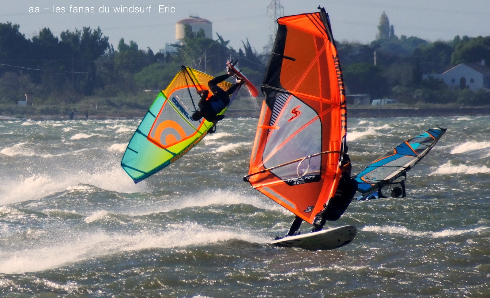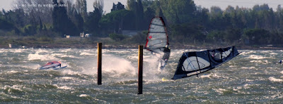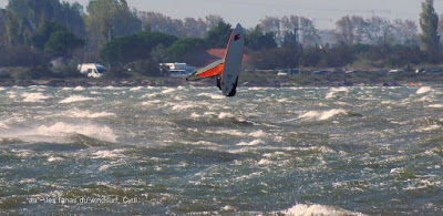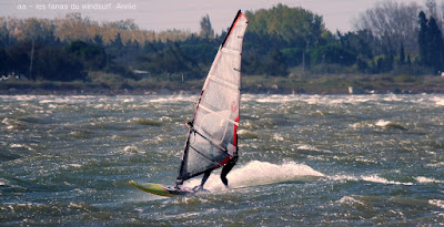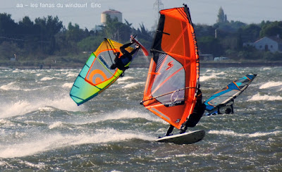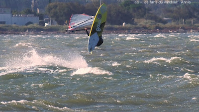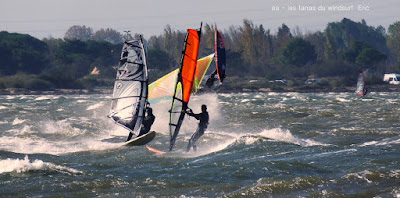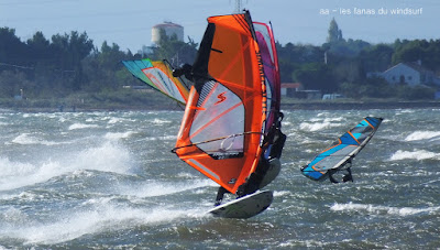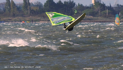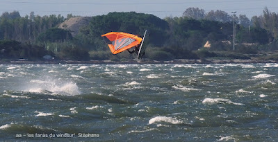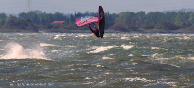 Samedi, Coudalère. C'était le moins beau des 3 jours suivant les prèvs et en effet ce fût une journée en demie teinte, bien de 9h30 à 14h00 puis le vent devient carrêment idiot, dans tous les sens un coup puis plus rien, pour finir je renonce, trop frustrant. Par contre le matin c'était de belles conditions, pas parfaites mais bien, j'ai même commençé en 3.7 mais c'était un peu présomptueux, je mets donc 4ms. Quand le vent a fait sa crise les algues sont remontées et c'était horrible en plus de l'irrégularité. Un monde de fou,. Espérons que demain la tramontane montre son vrai visage et eclaircisse tout çà.