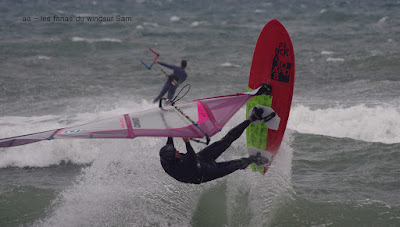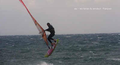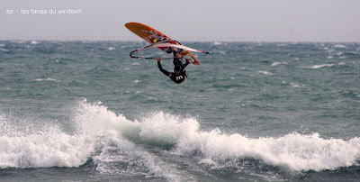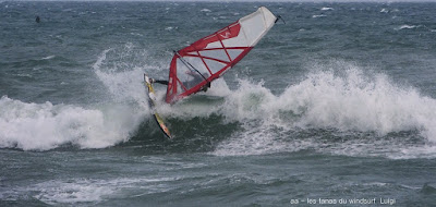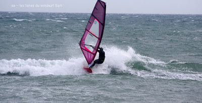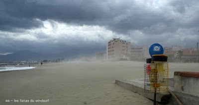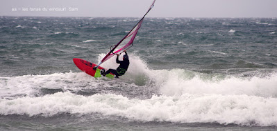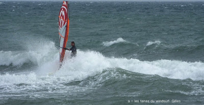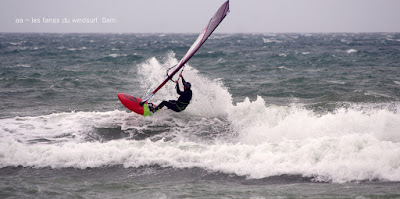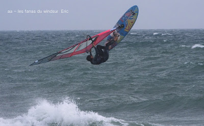 Mari, St Cyprien. Un gros marin technique aujourd'hui! technique parceque trés irrégulier avec d'énormes rafales et des moments plus calme, on a eu droit à du sud, du sud ouest, du sud est et resque de l'est, les vagues grossissant et diminuant au grés des directions. Beaucoup de bêtisier aujourd'hui pour Noel lol!! Des pointures aujourd'hui, bons surfeurs, bons sauteurs, du beau St Cyprien toujours dans la convivialité.