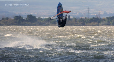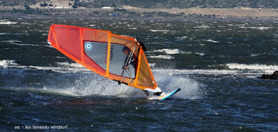 Mercredi, Coudalère. Moins fort qu'hier, du soleil, mais l'eau a encore perdu des dégrés malheureusement, 9°, vent trés froid, sans les gants c'est quasi insoutenable. Toujours trés peu de monde, les habitués. Le matin parfait en 4m puis le vent commence à passer nord avec de grosses molles, c'est vraiment pas le moment de rester dans l'eau , allez à la douche!
