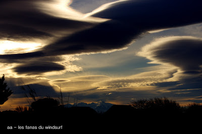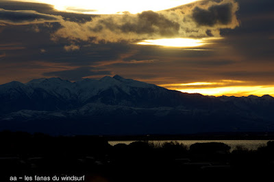 Mardi on tourne. Ce matin visite à Coudalère mais le vent est beaucoup trop irrégulier et faible du coup on part voirau Rouet, malheureusement notre beau spot est sous l'eau totalement inaccessible pour le moment, on fait demi tour en s'arrêtant à la Mine. Là un freestyler se régale et nous offre le premier bêtisier de l'année lol, avec Pascal nous retournons vers Coudalère car le vent est toujours trés irrégulier, en fait nos perigrinations s'arrêteront là, on prend quelques photos à Eole. puis je rentre pour faire ma session de marche nordique , ce soir photos d'un coucher de soleil qui promettait mais qui finit par un flop.