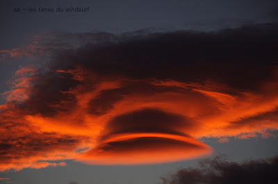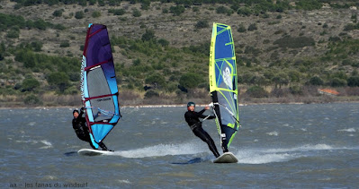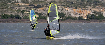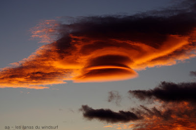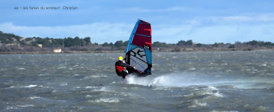 Mercredi,La Palme. Hé oui on aura presque fait le tour, dû à cette folle de tramontane . Le matin Coudalère fort et bim quasi plus rien, du coup nous voilà parti à La Franqui mais le vent est plein ouest, horriblement rafaleux et déventé au bord. Nous decidons d'aller à La Palme, peut être pas la meilleure décision de la journée car en partant du spot des vignes le vent était carrément caractériel!! complètement déventé au bord avec de grosses bouffes et très fort au milieu avec un petit clapot serré. Pour finir c'est tellement le top qu'on décide de retourner à Couda, en passant, le goulet est en folie, puis petit à petit en avançant ça tombe et en arrivant à Coudalère rien des morceaux de vent de ci de là , bon ben voilà une journée douce et ensoleillée un peu gâchée, espérons que demain soit moins cruel. Par contre quels magnifique couchers de soleil
