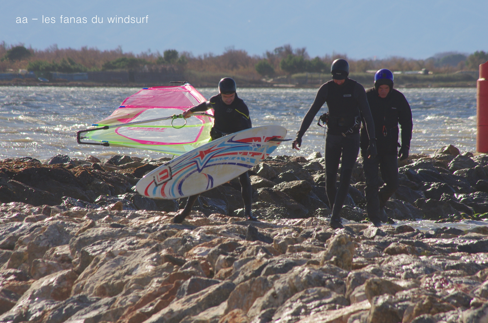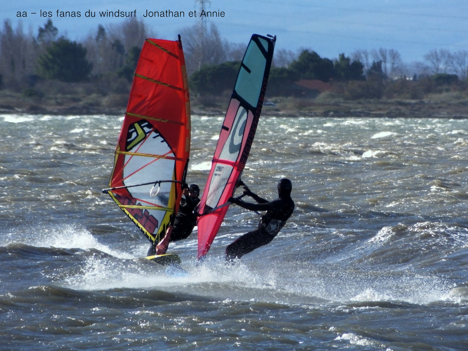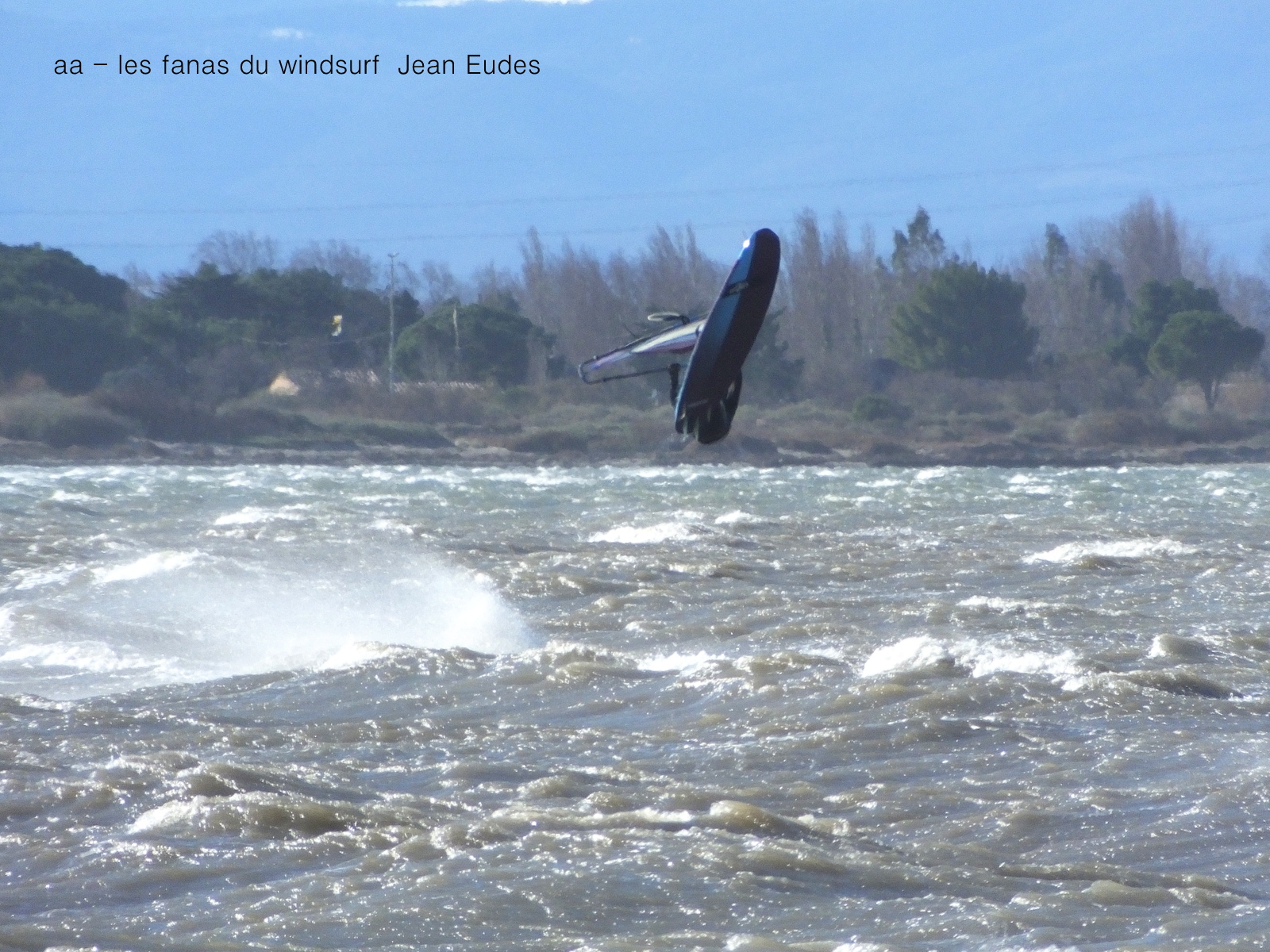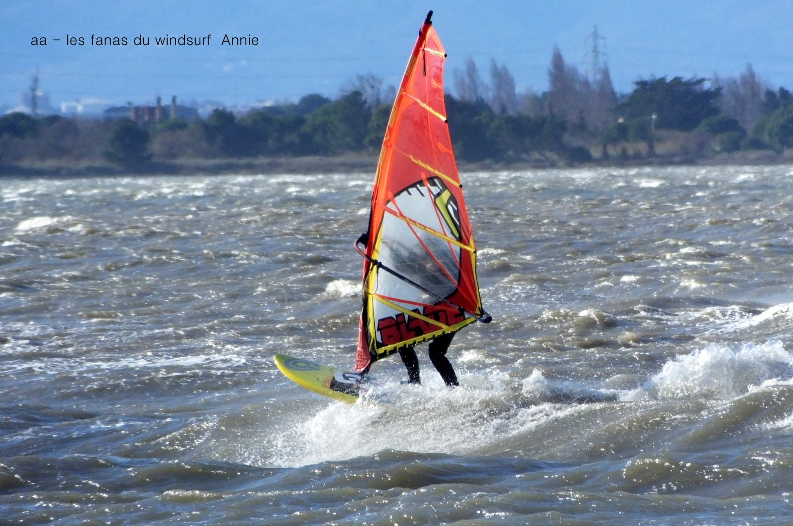 Jeudi, Coudalère. Au début rien on a bien cru à un nouveau fiasco, puis ça commence d'abord doucement et irrégulier, puis fort et irrégulier, puis trés fort, puis passé 50 noeuds, tout çà en un aprés midi! on ne s'y attendait pas mais on l'a pris en pleine tête , heureusement il ne faisait pas trop froid même sil'eau n'était vraiment pas chaude, demain je grée direct 3.3!