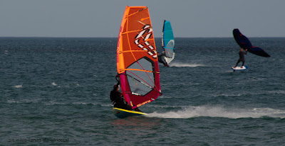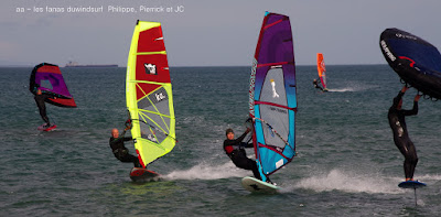Vendredi, La Franqui. Ca faisait longtemps que je n'avais pas navigué à la Franqui, même si au début le vent était hésitant il s'est bien renforçé et nous avons passé une super journée, pas froid du tout même un peu chaud dans ma combi d'hiver, plein de copains et une super ambiance , avec un nid de wingers en folie! vraiment top, à la rue par moments en 5ms une 4.7 aurait été mieux, soleil, sourires, et des meufs pour Lucky le top du top.