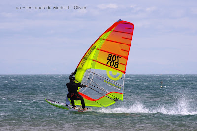 Samedi,PLN. Arrivés tôt, mais ce n'était peut être pas la meilleure idée ce coup ci car le vent souffle trés trés fort et l'on choisi de mettre petit et de partir en vague, je vais finir par changer de board mais pas de voile et vais donc rester en 4.2 une erreur sur la slalom. Enormement de monde, çà fait bizarre mais c'est normal c'est le training du Défi qui se rapporche. A certains moments çà ressemblait aussi à la coupe du monde avec les meilleurs slalomeurs sur notre spot en perdition...Cela n'y changera rien mais c'est quand même dingue de vouloir détruire un spot où ce genre de sessions existe, il n'y en a pas tant que çà en France ni en Europe d'ailleurs. Un temps clair avec des nuages de temps en temps mais rien de grave, douceur, et vent ouest rafaleux et puissant.