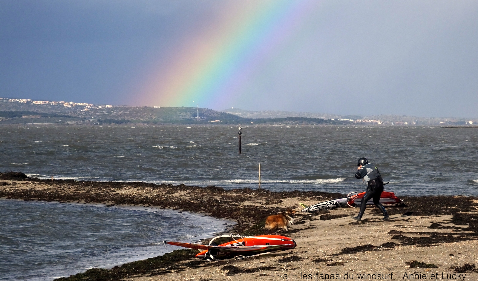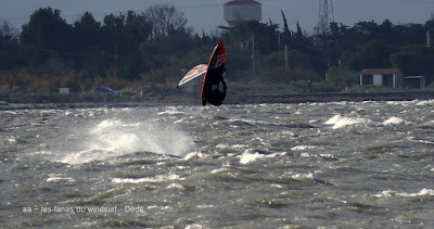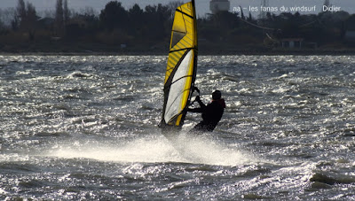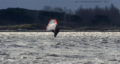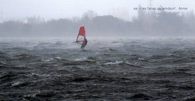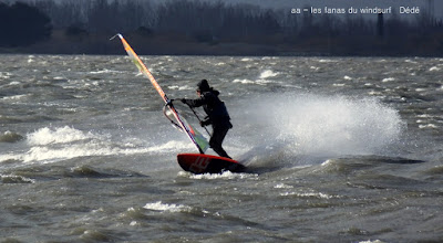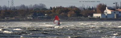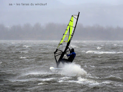 Vendredi, Coudlère. Cette fois ci c'est l'hiver, des volontaires??? ben pas tant que çà,il faut dire qu'alors que la matinée fût ensoleillée avec un vent trés fort et établi, un plan d'eau magnifique, à la mi-journée des grains nous ont envahi, ciel noir, pluie puis grêle, le froid c'est intensifié et le plan d'eau aplatit. Après un magnifique arc en ciel le vent revient mais beaucoup moins fort, j'y vais quand même mais finis dans la digue, mes deux voiles grées du matin (3.7 et 3.3) sont trop petites et le plan d'eau n'est plus formé, à demain.