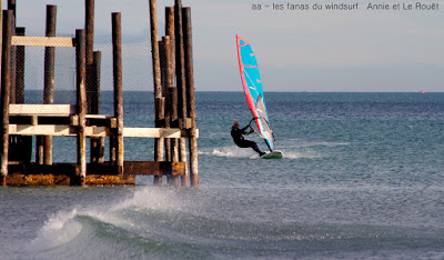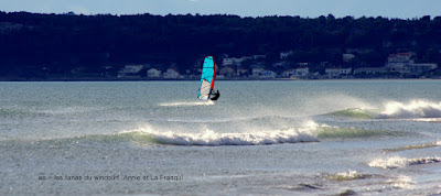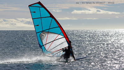 Jeudi, Le Rouët. J'avoue que la session d'hier me restait en travers du gosier, photographier les k d'or c'est bien mais du coup louper une session pareille!! bon passons...du coup ce matin j'entends le vent il est tôt mais il fait doux aller hop debout direction le Rouët, au début pas trop de vent mais çà se renforce un peu je vais tenter ma chance, et de fait à peine arrivée sur l'eau la tram plein ouest redemarre, super, c'est parti pour 1 grosse heure de glisse totale, l'heure que j'avais perdue hier...d'accord il n'y avait plus de vague mais quel plaisir seule au monde (ou presque) avec du plein soleil, 16° et un vent ouest soutenu. Il est là le bonheur et çà m'a fait un bien fou avant de plonger dans l'hiver sibérien.