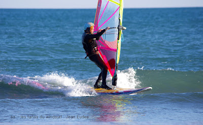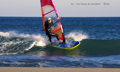 Samedi,Le Rouët. Je suis passée a côté du coche aujourd'hui, ce matin j'arrive tôt, 10h00, 20 noeuds, de belles vagues ,mais nord-ouest, froid et personne. Il vaut mieux aller à PLN où il y aura du monde, mauvaise pioche, en arrivant personne, pas un pet de vent et néant de vague. Vite on fait demi tour et on retourne à PLN , il y a encore une quinzaine de noeuds mais le temps de gréer il n'y en a plus que 12. Du coup on joue avec Lucky, les amis arrivent, Dédé, puis la famille au grand complet. Ca navigotte, Mathis ce régale dans les vagues du bord mais pas assez de vent pour mon matos; toujours pas gréé voilà mon erreur car à 16h00 le vent monte un peu, j'aurais pu y aller, on commence à gréer mais tout le monde s'arrête alors...Un peu malheureuse ce soir car j'ai aussi un sup sailing mais je l'avais pas pris, j'aurais aussi pu m'amuser dans les petites vagues, c'est tellement beau, Mathis est même arrivé à faire du surf. Pas grave Lucky lui a fait une des plus belle sessions de sa vie (un film à suivre). Allez demain baston (j'espère).