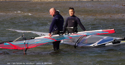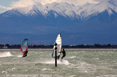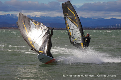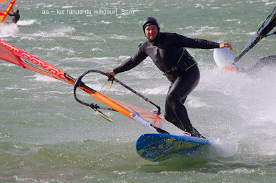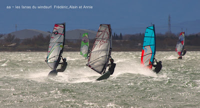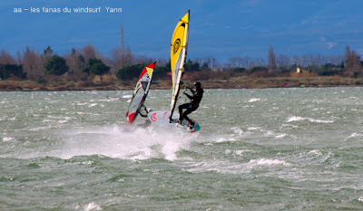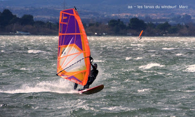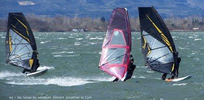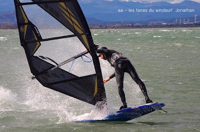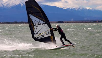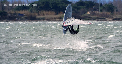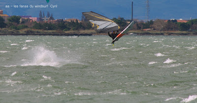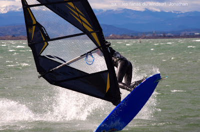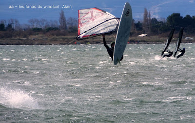 Samedi, Coudalère. Pas 100 /h mais une super session (4m 70 litres pour moi). Beaucoup de monde! on voit qu'il fait moins froid... du soleil puis des nuages. Un plan d'eau pas trés formé du à l'irrégularité du vent mais bien de quoi s'amuser et s'éclater..enfin certains, aujourd'hui c'était les éclopés du windsurf , Sam et Cyril et les destructeurs, Cyril (encore!) et Jonathan 2 voiles explosées, j'espère que tout ça ne sera pas trop grave.
