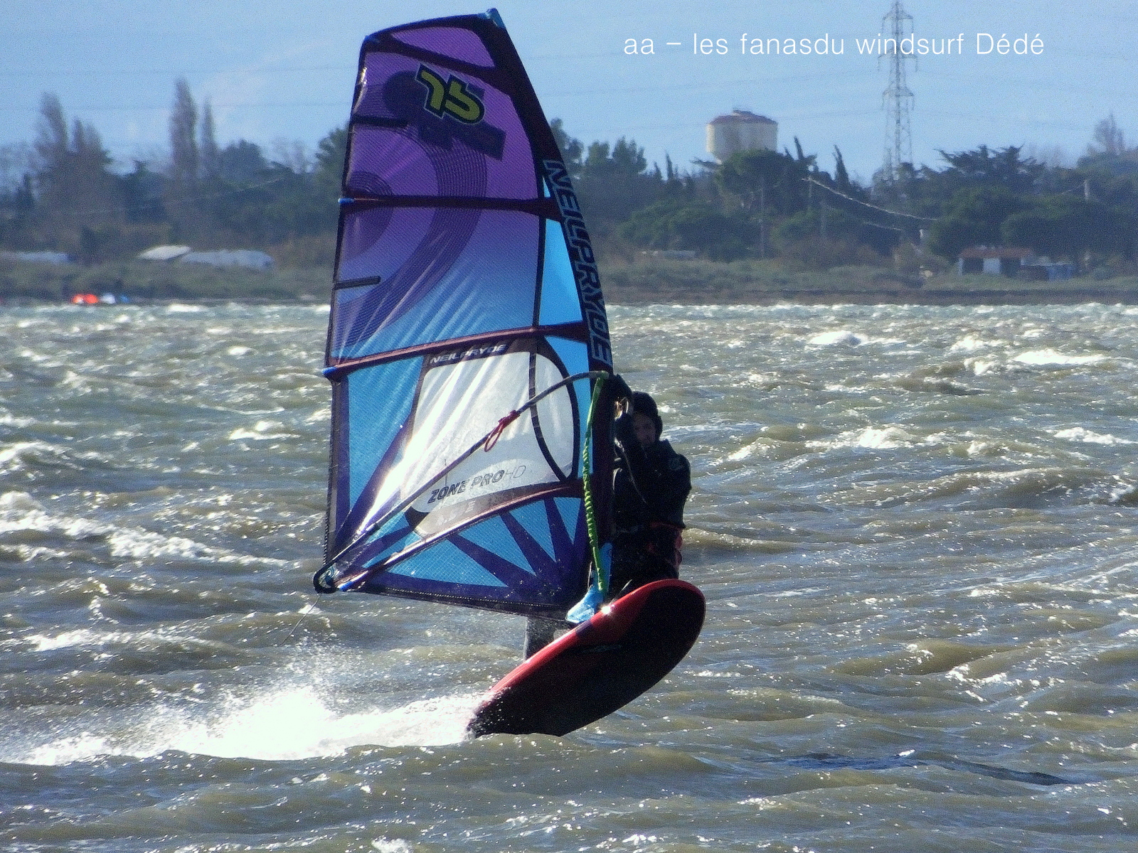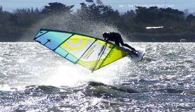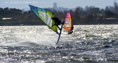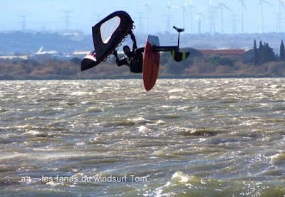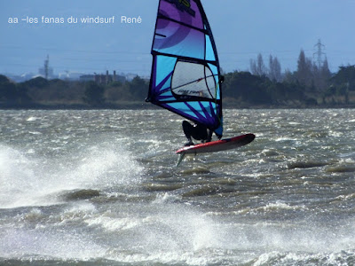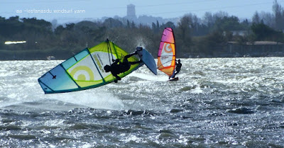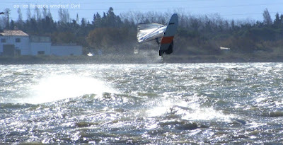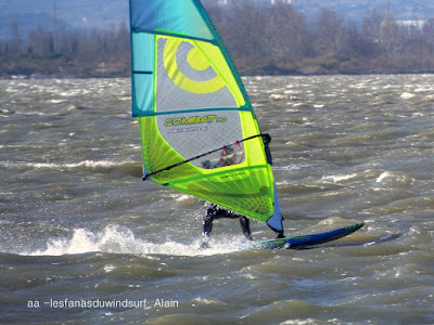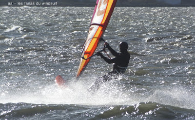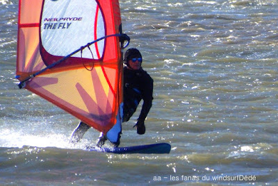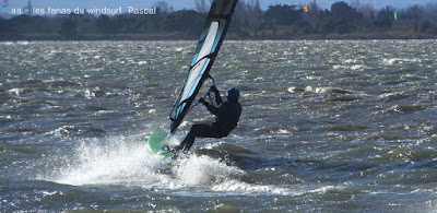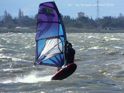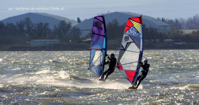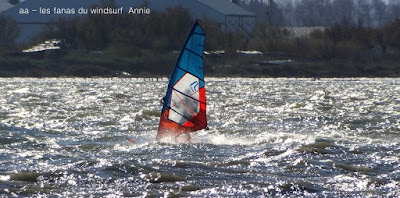 Mercredi, Coudalère. Le matin le vent est aux abonnés absents, nous partons en passant par la maison pour changer de matos, et hop miracle le vent se lève en prenant des tours, nous repartons donc pour Couda. On devra encore attendre un peu pour choisir le bon matos, perso je suis trés contente car pour la première fois j'opte pour gros volume (Dyno 95) et petite voile (4m) et ça marche à la perfection. Il fait relativement doux, pas eu froid du tout avec un eau soleil. on peut dire que pour finir la session fût ...top!!! avec en prime une ambiance comme onles aime.