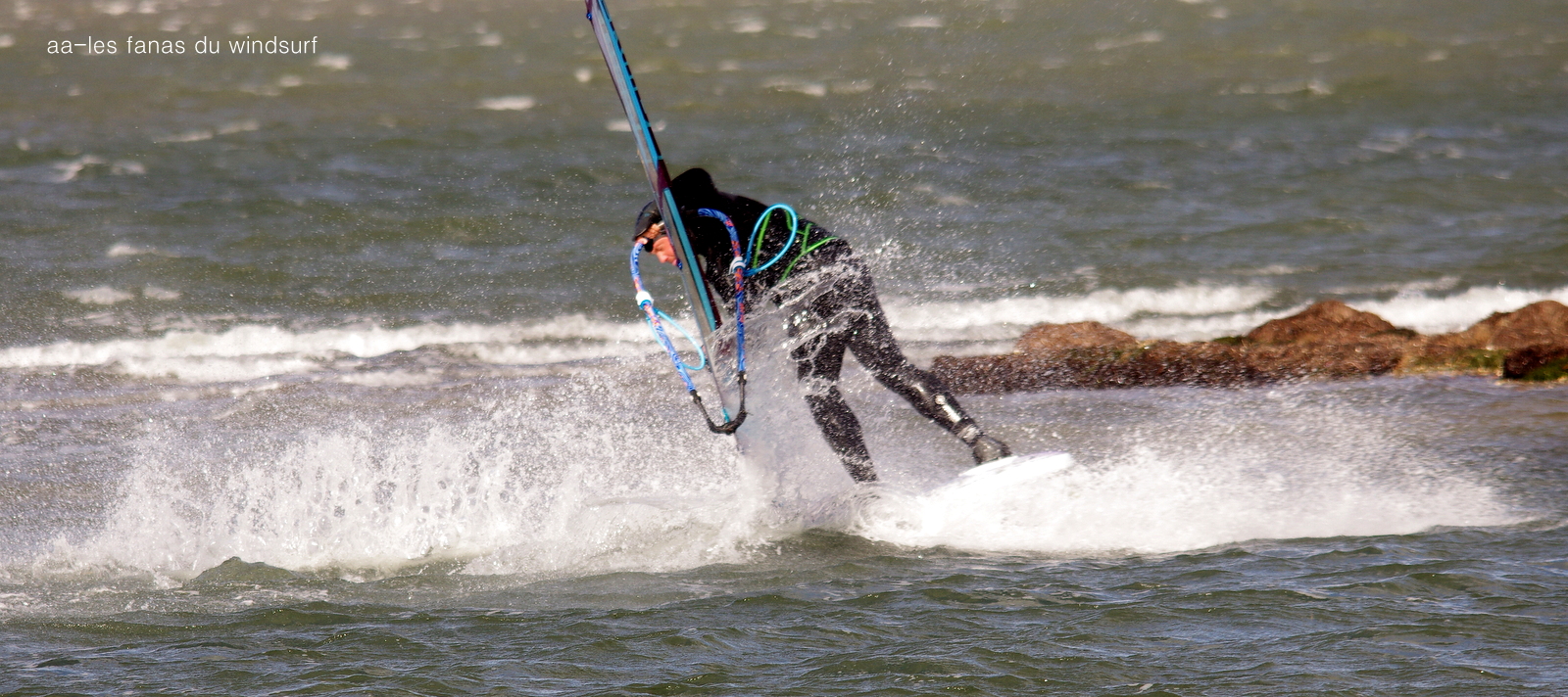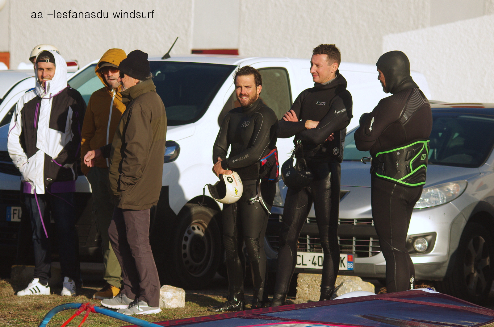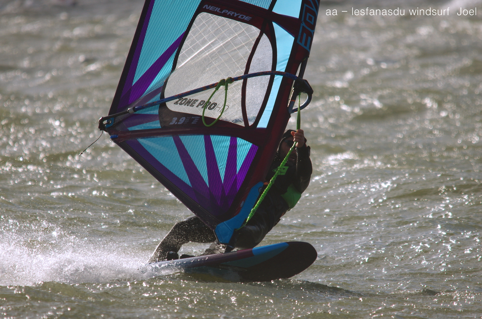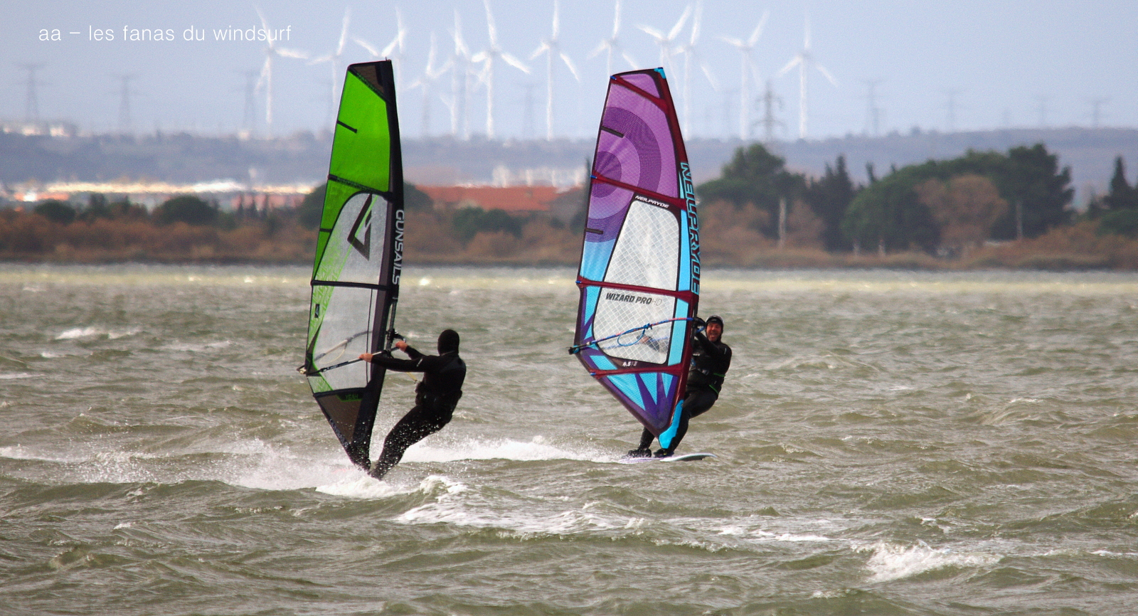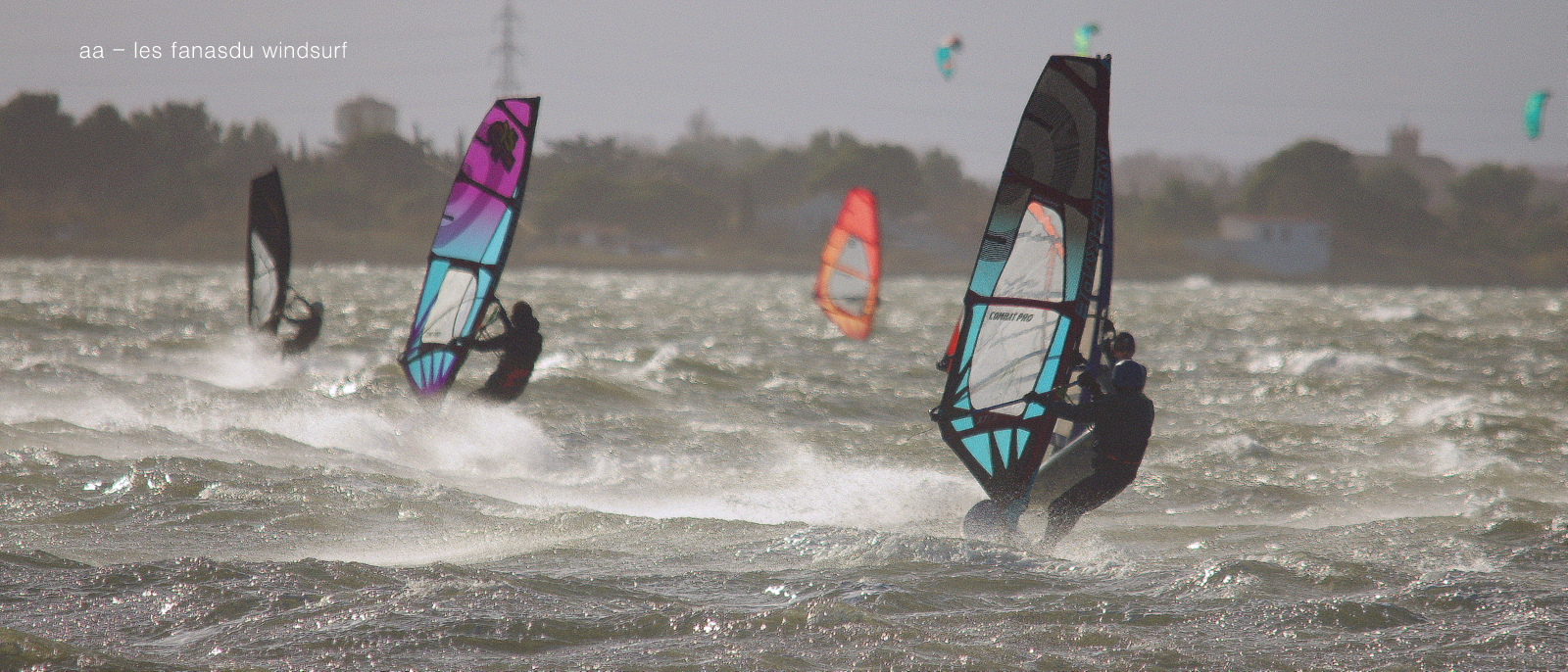 Samedi, Coudalère. On s'attendait à une grande journée d'après toutes les prévisions, c'était sans compter sur la mauvaise foi de dame tramontane qui a passé la journée à changer de direction et surtout de force, allant de 0 à 45 noeuds et quelques fois plus dans les grosses rafales, de l'avis de tous une horreur, des voiles de toutes tailles pour faire face à cette cacophonie. J'avoue avoir passé mon tour et vu les commentaires je ne le regrette pas!!