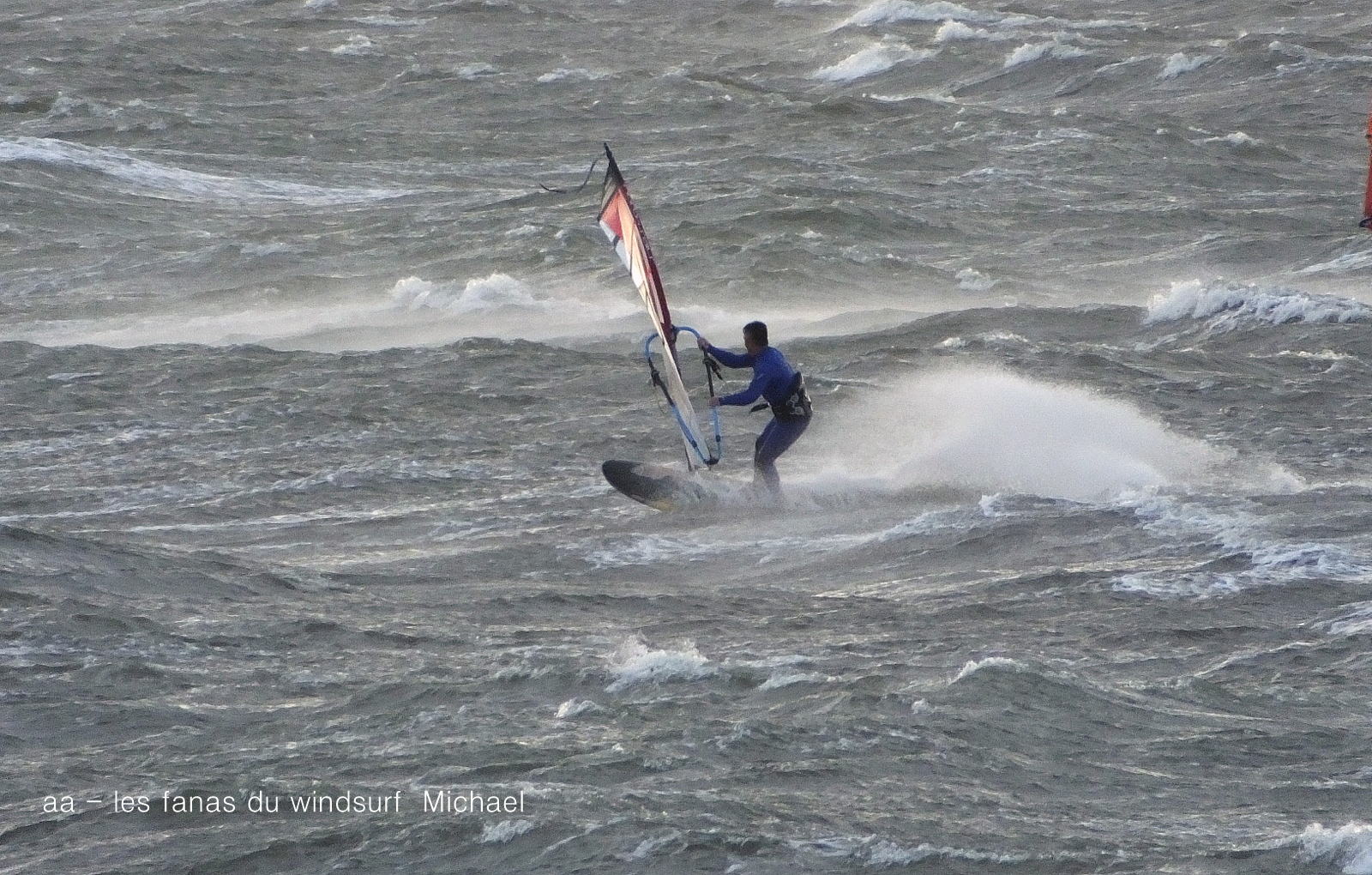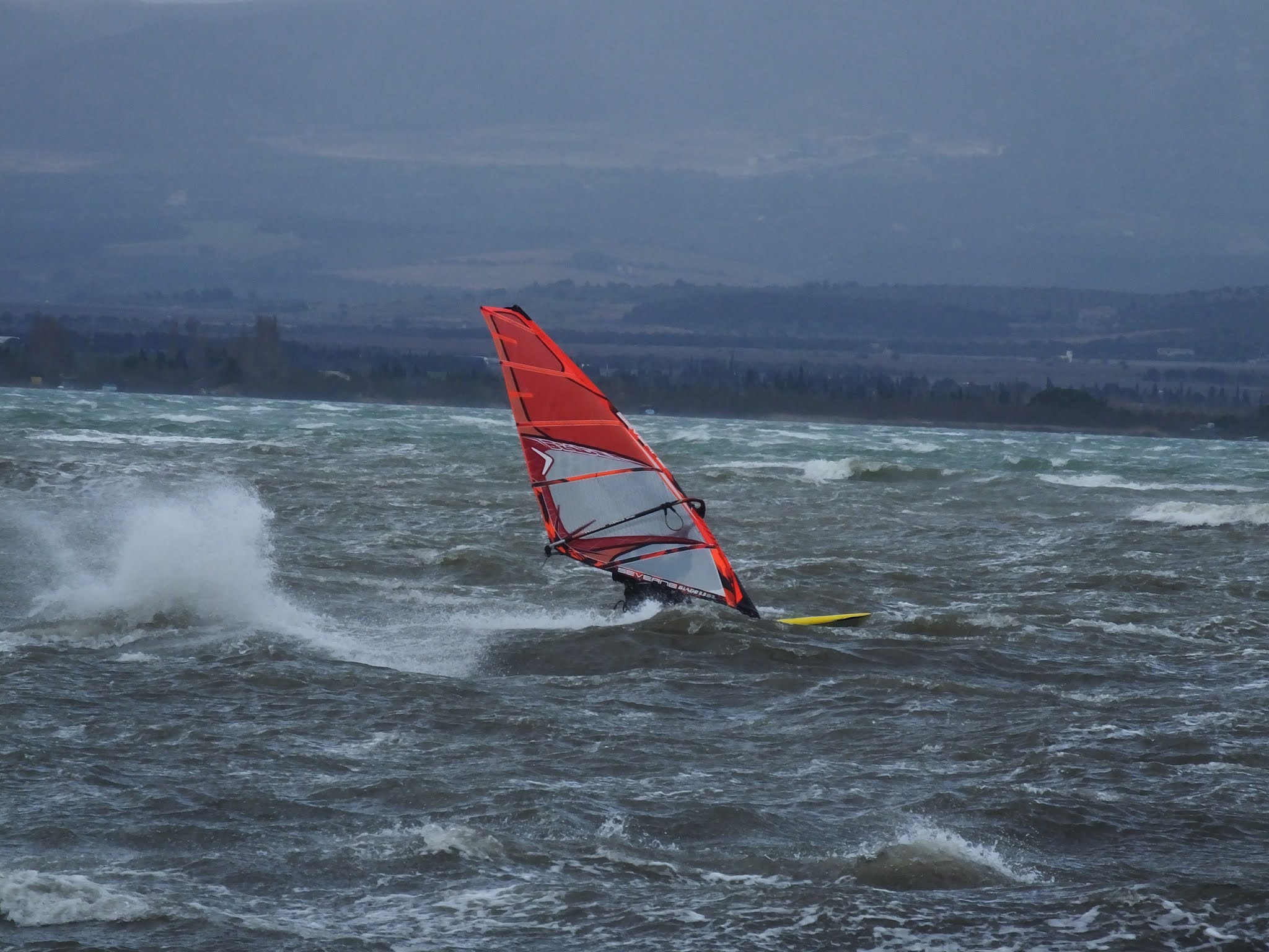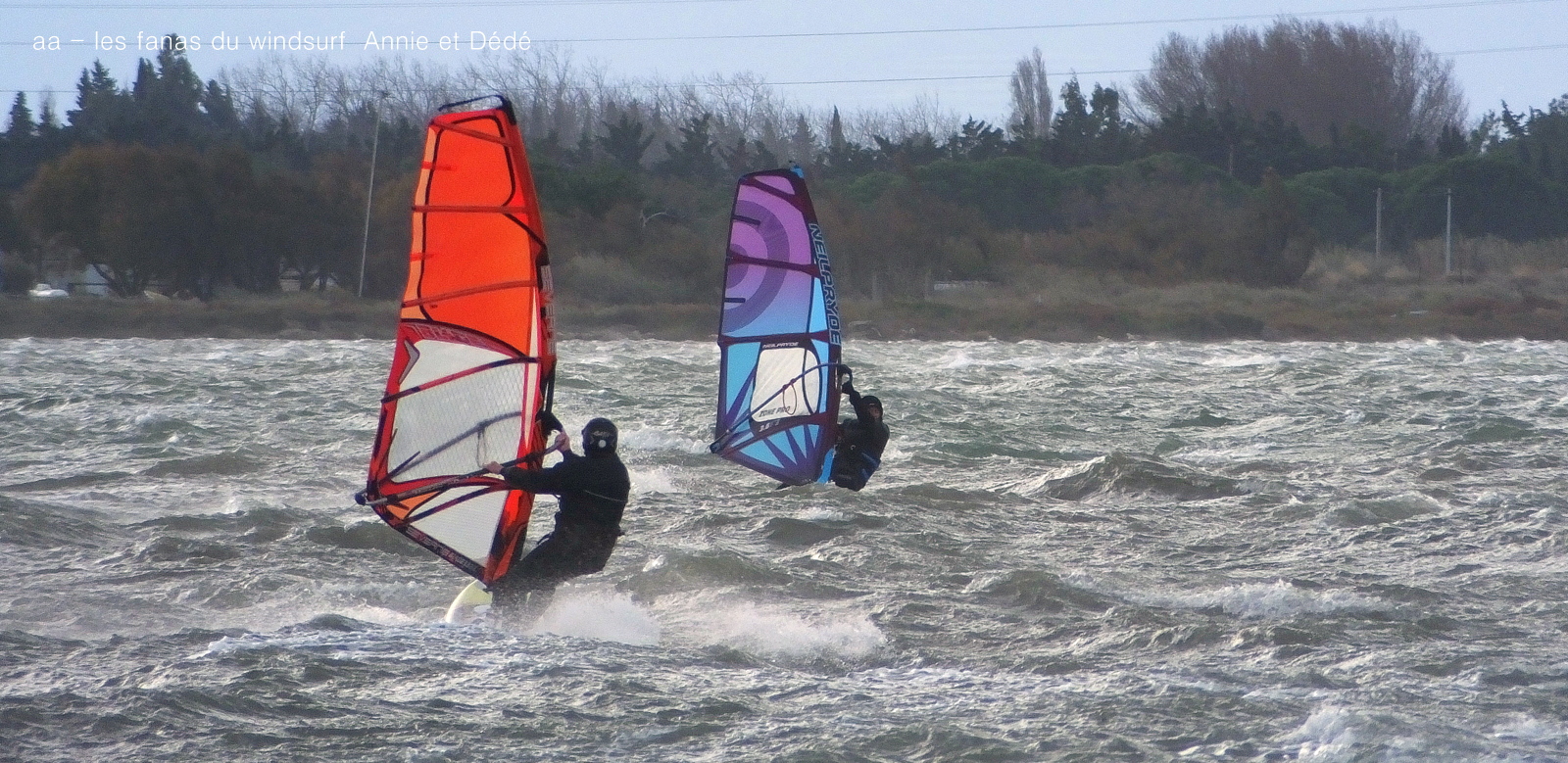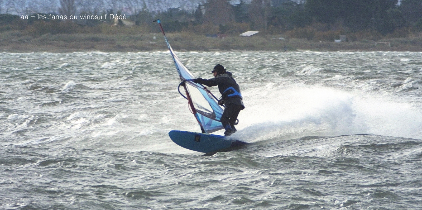 Mardi, Coudalère. Un froid de canard pas plus de7°! le ciel est noir le plan d'eau aussi, le vent est fort mais irréguiler. Pas beaucoup de monde (on se demande pourquoi), par contre un Canigou plus beau que jamais dans la tourmente. 3.3 pour moi mais pas assez de volume pour passer les déventes. Espérons que demain il fasse beau.