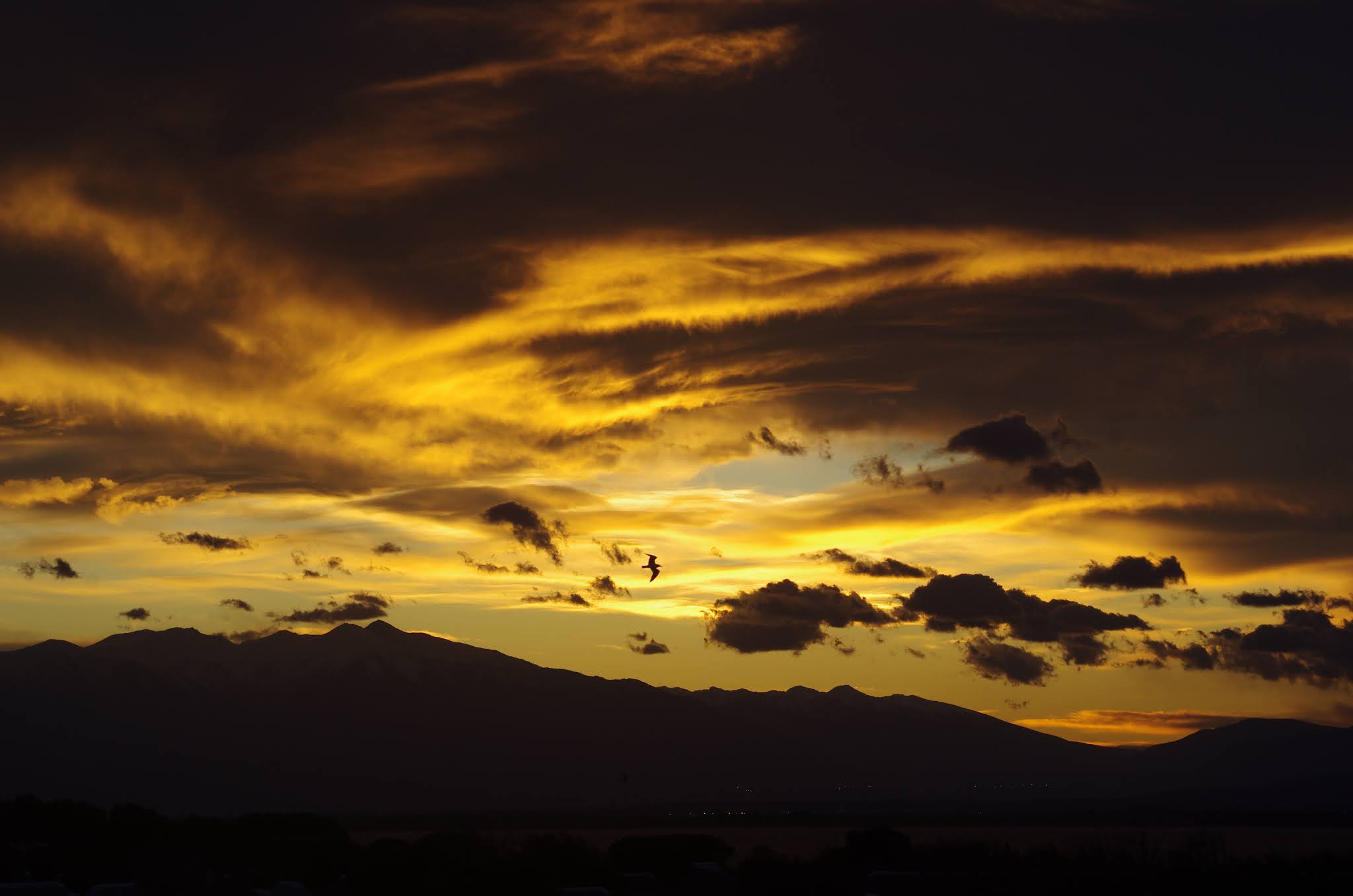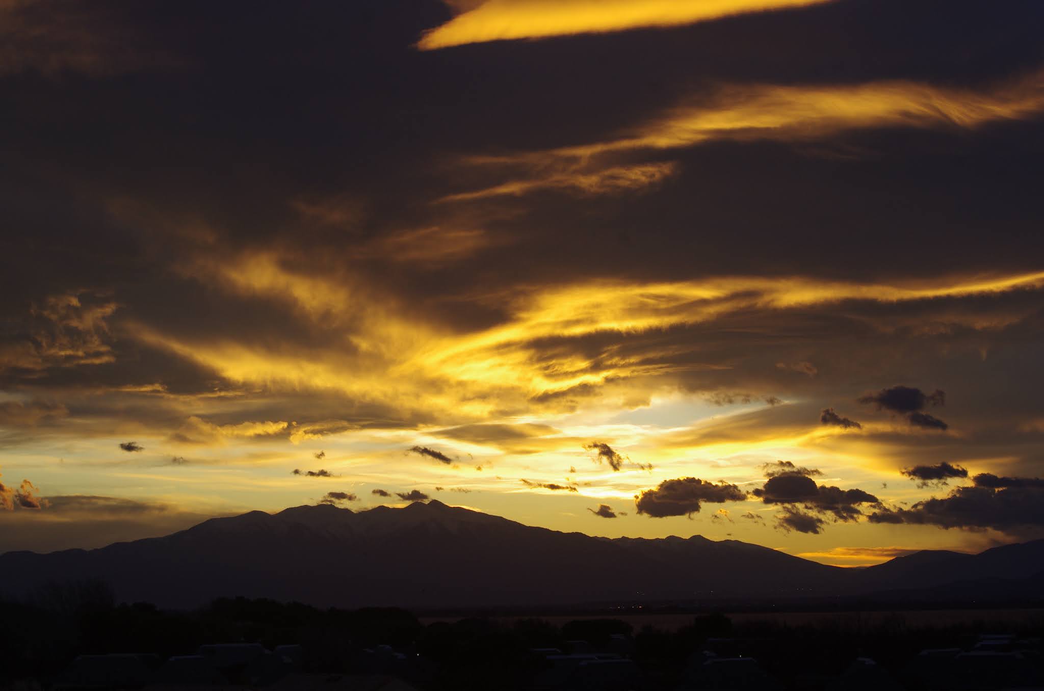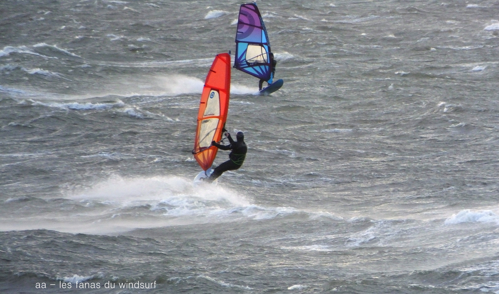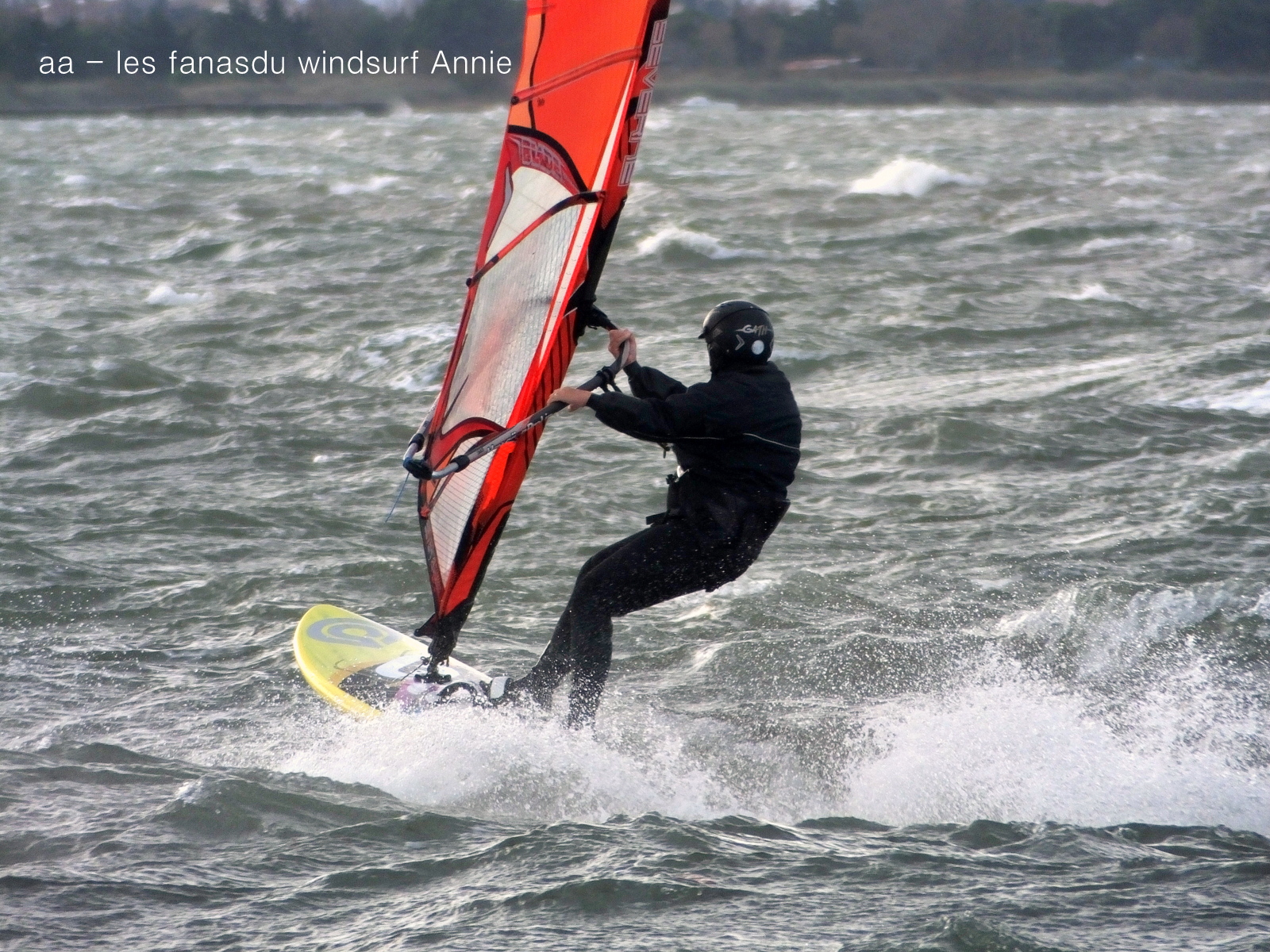 Mardi, Coudalère. Un froid de canard pas plus de7°! le ciel est noir le plan d'eau aussi, le vent est fort mais irréguiler. Pas beaucoup de monde (on se demande pourquoi), par contre un Canigou plus beau que jamais dans la tourmente. 3.3 pour moi mais pas assez de volume pour passer les déventes. Espérons que demain il fasse beau.