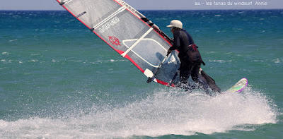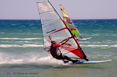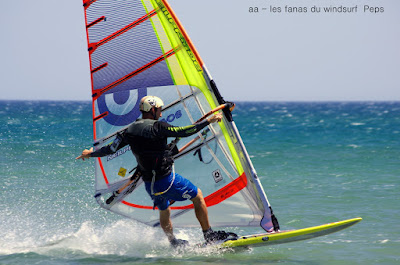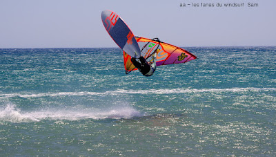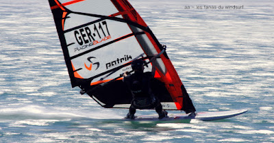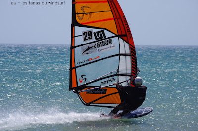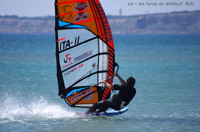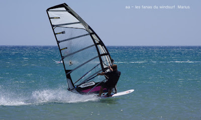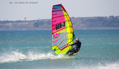Vendredi, Le Rouët de La Palme. Voilà une session parfaite, un vent plus fort que prévu, un peu light au tout début mais se renforçant au point de me faire changer de voile pour 4.2 et de permettre à Laurent d'utiliser son gun 38cms. Sam Esteve quant à lui toujours en démo avec il me semble des nouveaux moves. Du monde mais moins dérangeant qu'hier et surtout et à mes yeux c'est le principal une atmosphère amicale et une ambiance de fou,c'est aussi çà le windsurf, pas de prise de tête, on fait le même sport et on a la même passion. Je vous dis pas l'état de fatigue de Lucky ce soir, un trop plein de caresses et de runs endiablés.Voilà une journée qui reboost mon envie de naviguer et de sourire.