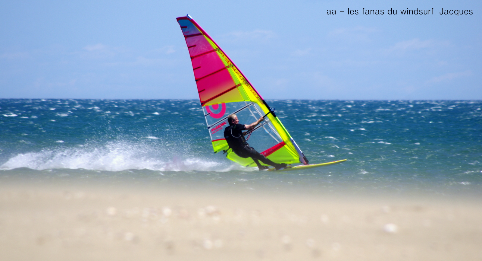 Samedi, Les Coussoules. Il faut dire que le spot se mérite, les vans n'ont certainement pas apprécié mais nous oui...grand rinçage à l'arrivée et c'est oublié. Arrivés assez tôt on va profiter de conditions idéales, nord-ouest, assez abattu mais plan d'eau parfait. Le vent va prendre des tours, le sable voler et à mon avis les chronos tomber. Je me suis éclatée en bonne entente avec tous ces fous de vitesse c'était super et trés amicale, çà fait du bien. Lucky s'est éclaté aussi et avait trouvé une jolie chaise pour Toutoune, on était pas bien là Tintin?????