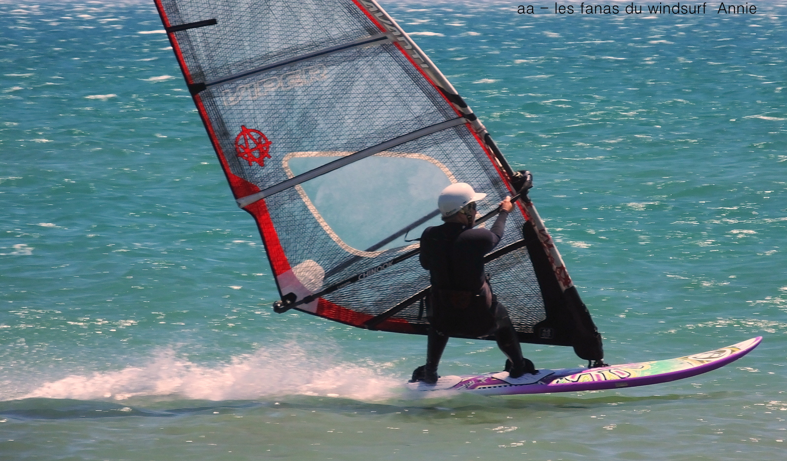 Lundi, Le Rouët. Ce matin nous passons quand même à Coudalère assez tôt,pas trop de vent, en fait nous avons des amis qui arrivent cet après midi alors pas trop le temps d'attendre le vent, donc direction Le Rouët. En voilà une idée qu'elle était bonne !! super vent, pas trop de monde, super ambiance, châleur, des bancs de sable (gaffe!!!), enfin tout y était, je me suis éclatée en 4.5 et même explosée quand le vent a pris des tours et des tours. Superbe session, en rentrant quand j'ai vu le vent à Couda j'ai failli y retourner mais là non je n'en pouvais vraiment plus. Tout le monde est crévé mais c'était trop bon.