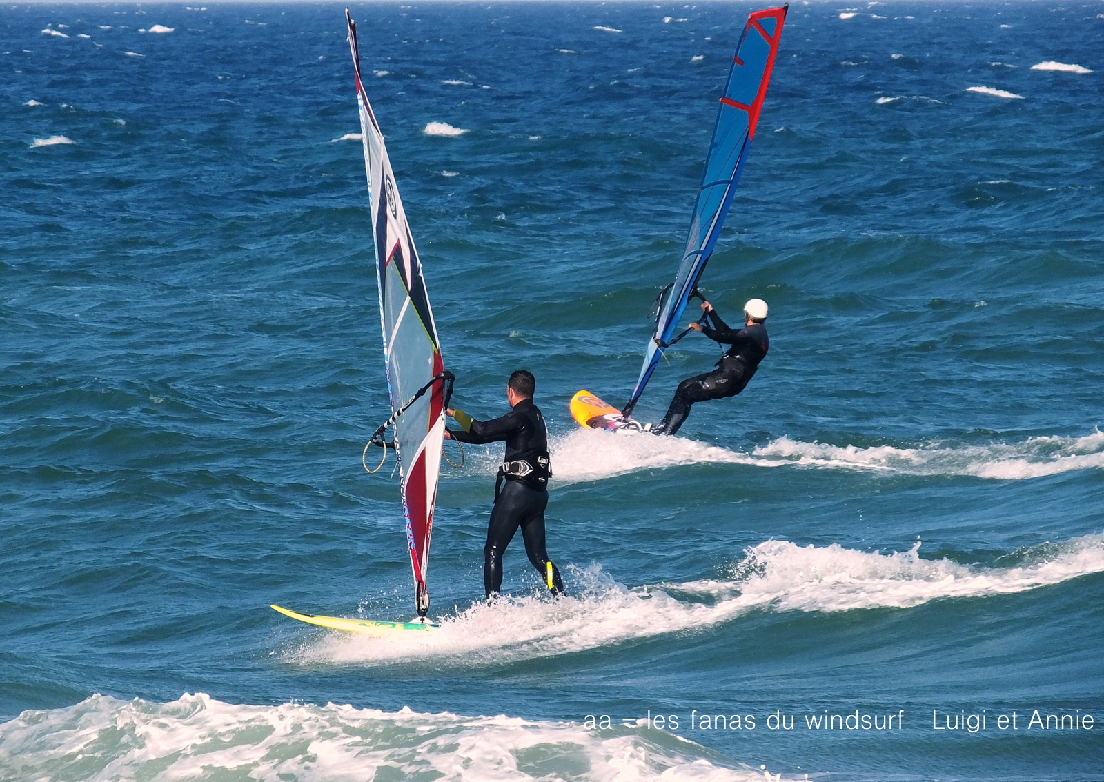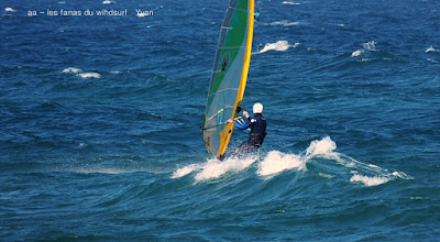 Dimanche, St Cyprien. Météo marine n'annonçait pas grand chose par contre les sites météos s'envolaient dans des 25-30 noeuds, non ce ne fût pas çà du tout mais le vent a fini par nous atteindre, une vingtaine de noeuds bien onshore avec des petites vagues. En fait plus de courant que de vent mais de quoi naviguer avec un grand soleil et des températures estivales.