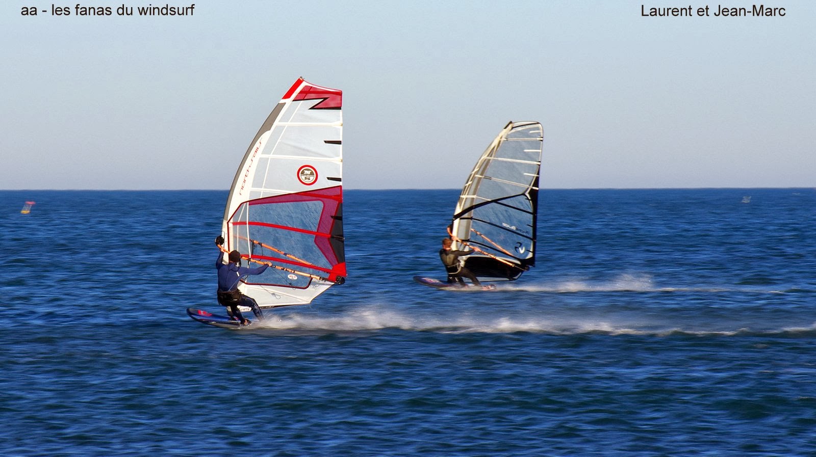 Mercredi,PLN. Au lever du jour les pare-brises sont givrés!!! oui mais trés vite une douceur envahit la région avec un soleil extravagant d'intensité, vite direction PLN. A notre arrivée un bon vingt noeuds, des petites vagues et....15°!!!! 5.3 et hop sur l'eau, le temps de quelques bords et....ben quoi...trop chaud pour la tram ou quoi????le vent tombe, refuse, tergiverse. Du monde arrive, la douceur pousse au tchaching généralisé!!!! et puis petit à petit le vent reprend, mais alors d'un irrégulier!!! nord-ouest d'un côté, sud-ouest de l'autre et rien au milieu!! que retenir de cette journée??? Il faut chaud et on en a bien profité, mais demain le froid revient, c'est parti pour une ré-acclimatation!!