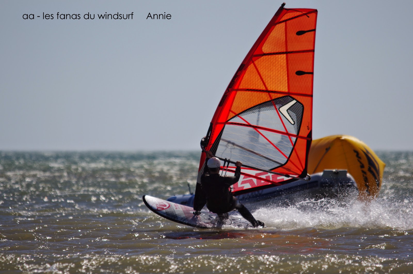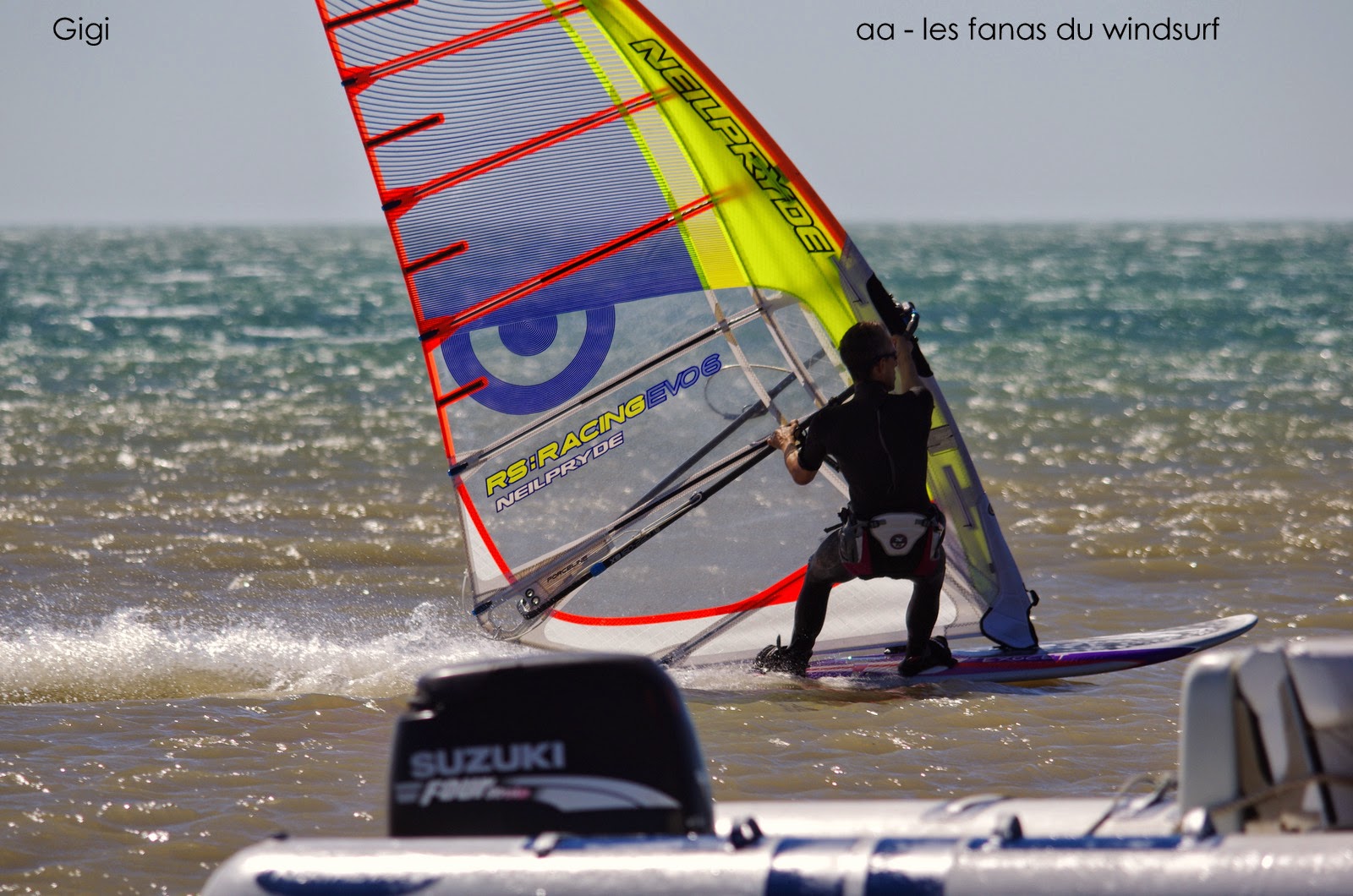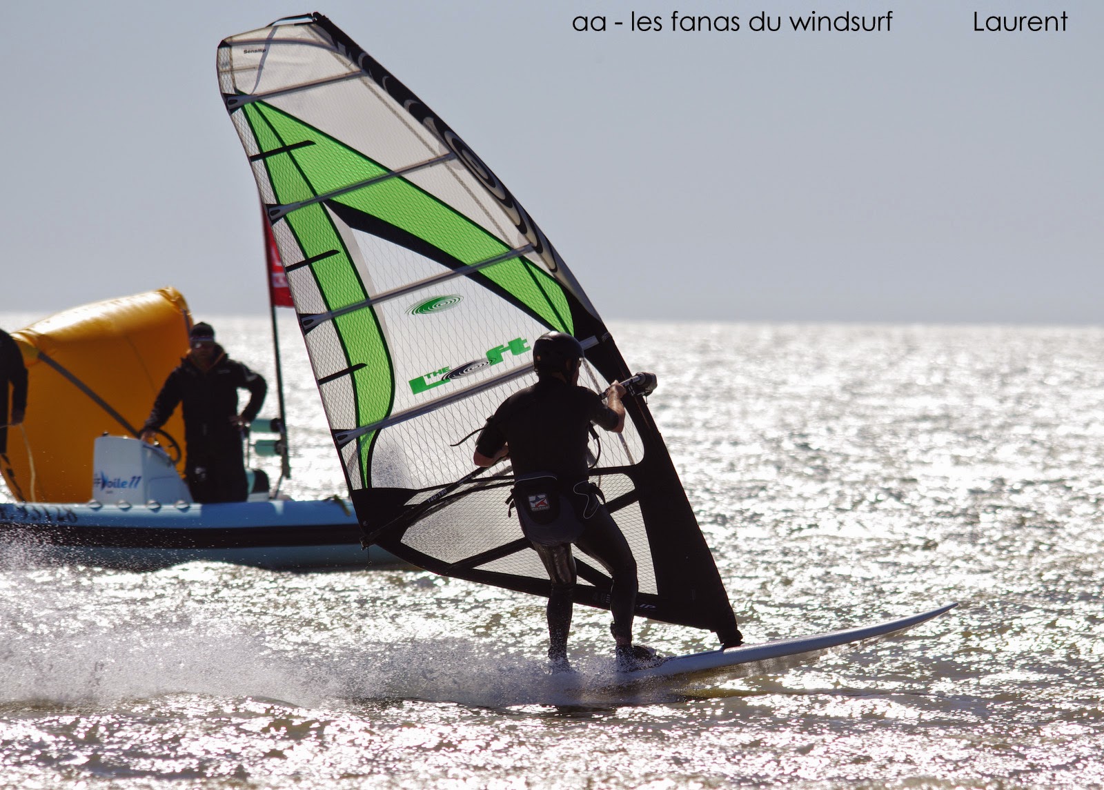 Dimanche,Comme prévu nous voilà partis pour le dernier jour du Défi Wind . Il est tôt pour pouvoir profiter du plan d'eau avant l'invasion!! nous y retrouvons Laurent et à 9h30 nous voilà sur l'eau. Magigue, personne, un plan d'eau lisse, un vent pour 4ms, ouest, il fait beau, le rêve. Deux heures plus tard les nouvelles tombent, ils arrivent! et en effet au loin on voit apparaître la horde! allez au boulot....