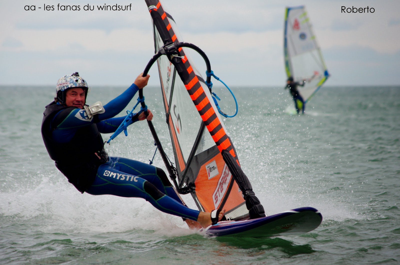 Mardi, Les Coussoules. Ce matin, horreur il pleut!! On attend.... il pleut!!Baston montre du vent à La Franqui, on se décide. A notre arrivée... il pleut! mais alors il PLEUT!!!Le vent souffle fort et Patrick et Roberto sont les seuls à avoir eu le courage d'y aller. J'attend un peu dans la voiture, il pleut....bon ben va falloir faire avec..pour finir je m'habille dans le fourgon, Toutoune a mis sa tenue d'hauturier. 4.7 vintage et la slalom pour assurer. Juste génial, vent parfait, ouest, fort au début , puis une petite molle, puis çà repart à fond, plan d'eau lisse, nous sommes 5, le bon côté du mauvais temps. Vers 14h30 la pluie s'est arrêtée, le vent s'est régularisé et nous on s'est régalé.Tip Top, en plus ambiance géniale.