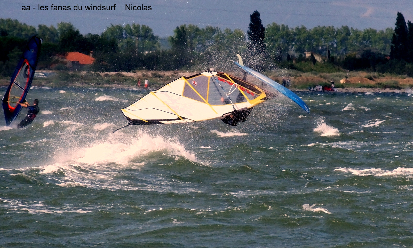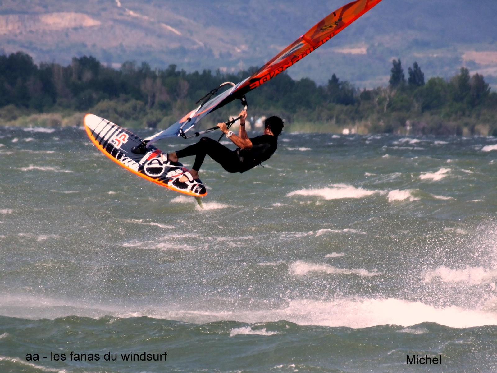 Samedi, Coudalère. TRés tôt, il est 8h00, 8h30 sur l'eau en 4ms et 76 litres. Il fait frais, çà fait du bien, mais pour finir on va ressentir du froid , incroyable ce que le corps s'habitue vite à la châleur.Déjà beaucoup de monde à cette heure matinale normal,les prévisions n'annoncent du vent fort que le matin. Le vent est bien mis mais irrégulier, pas mal d'algues. Le monde arrive, une heure de vent fort puis çà retombe un peu, Il est 12h30, 4 heures de nave, il fait faim j'avais rien pris à manger.....beaucoup de monde sur le parking et le vent tombe. Aller c'est bon, place à ceux de l'après-midi. En fait le vent va remonter par moments pendant toute l'après midi, comme quoi il ne vaut mieux pas regarder les prévisions, Désolée pour ceux arrivés plus tard je n'avais pas assez chargé la batterie, ne me battez pas.......