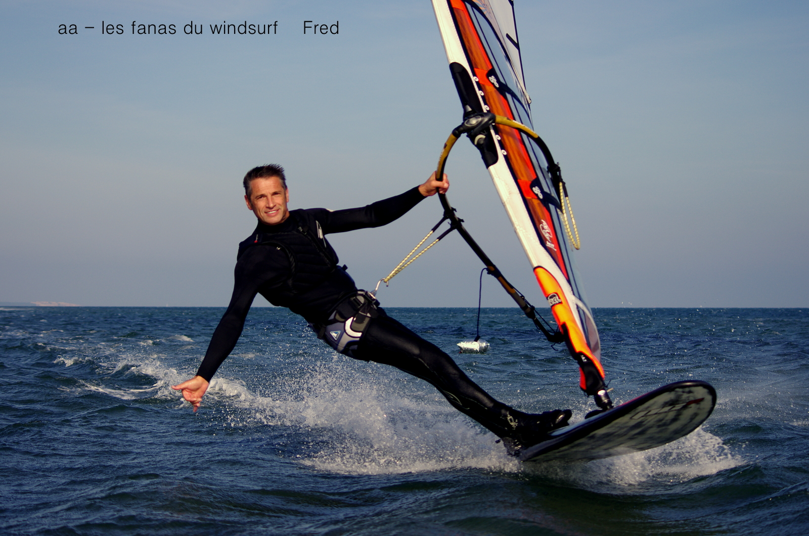 Vendredi,PLN. Enfin du vent! du vrai, qui va tenir toute la journée sans faiblir. Du grand soleil, de la douceur, une eau magnifique .Seul petit bémol, un sale tout petit clapot dû aux bancs de sable, on dirait que quelqu'un a vidé la mer....Plein de copains, une super ambiance, les slalomeurs s'entraînent autour d'une bouée et les freestylers essaient de me tomber dessus lol. La fête, une belle journée , la banane quoi...