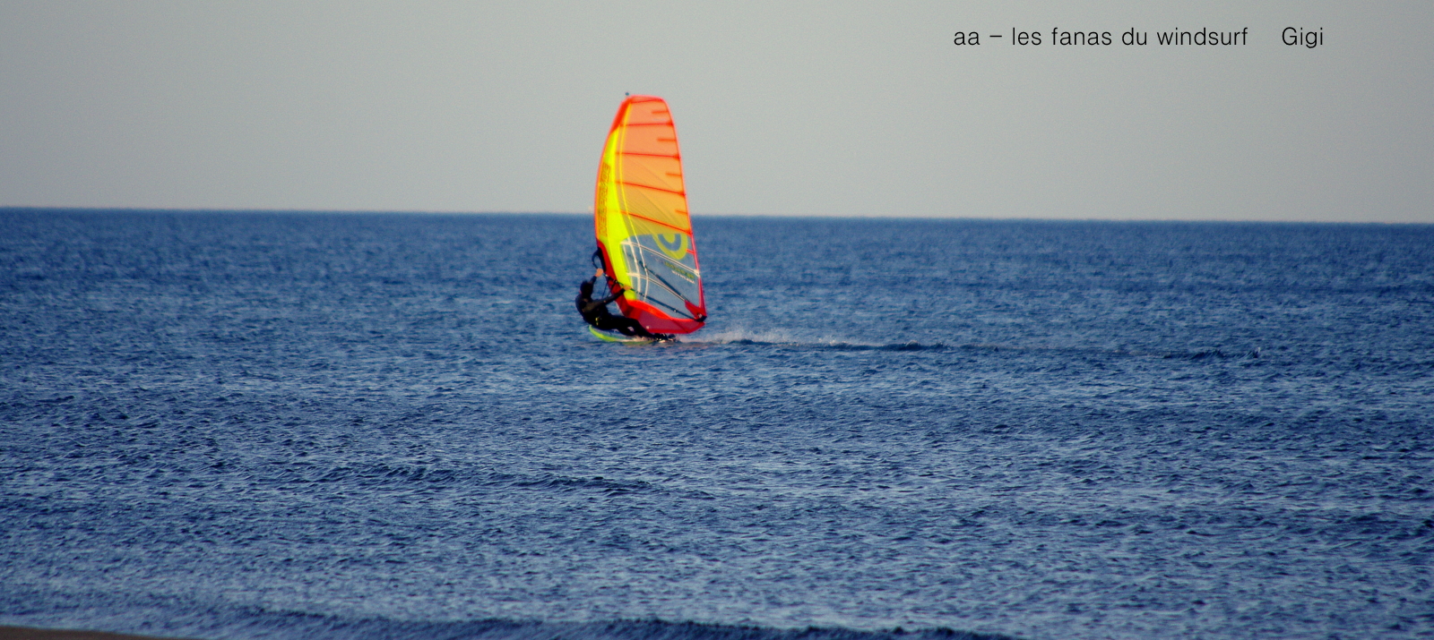 Vendredi,PLN. Mais a quoi en est on réduit !!! courir après le moindre petit souffle de vent pour un planing illusoire! décidemment cette année ne nous laissera pas que de bons souvenirs, quand aux annonces météos....no comment. Gigi s'en est bien tiré, il est bien le seul a avoir vraiment plané grâce à une vingtaine de minutes potables vers 15h00. Lucky lui s'est régalé comme d'habitude et visiblement il se demande encore ce que je faisais sur l'eau, que lui répondre? juste pour dire qu'on était sur l'eau et que l'on a plané.