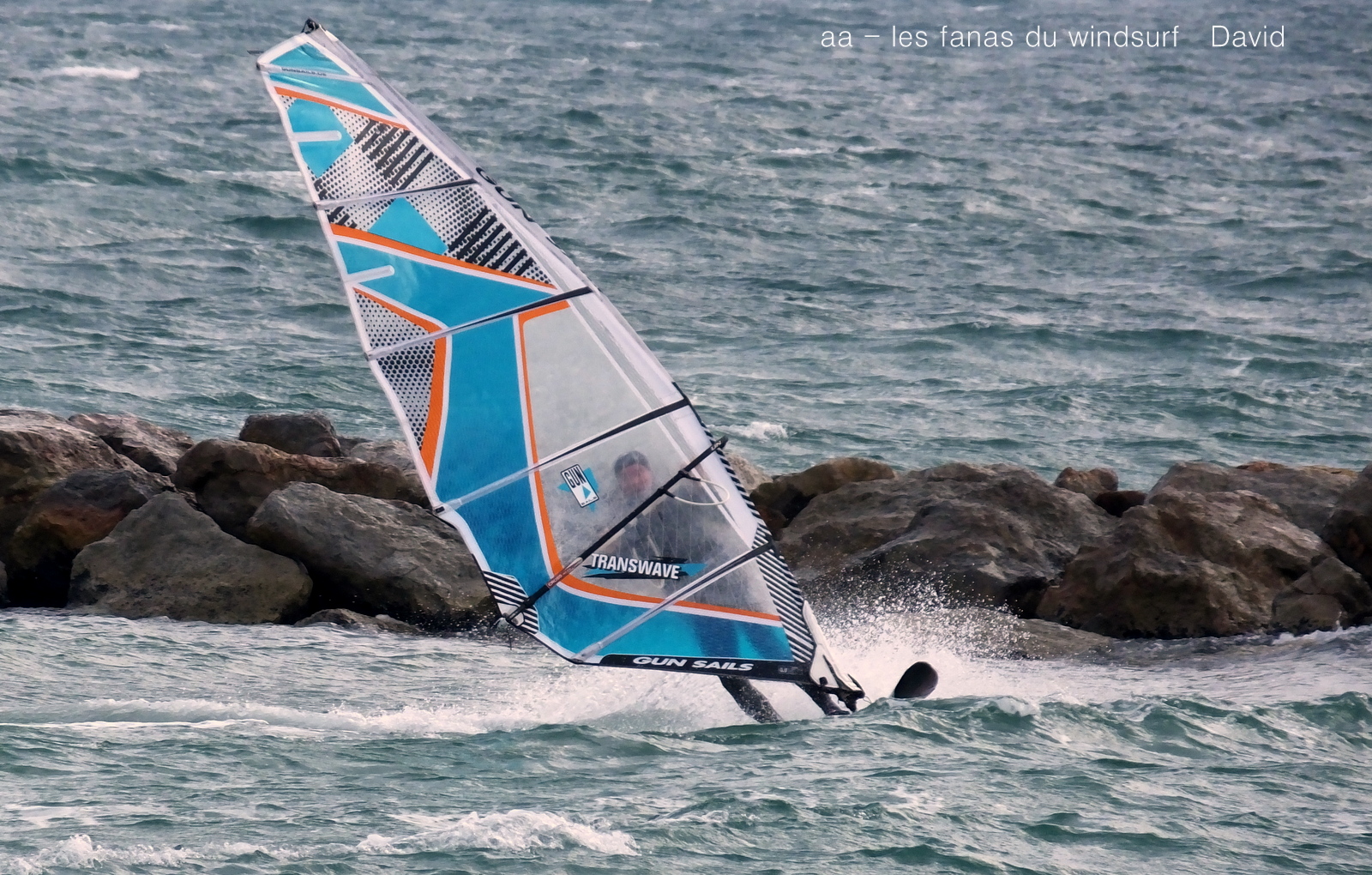 Vendredi 1.1.2016. St Cyprien.Naviguer le premier jour de l'année me semble être un tout bon présage. Beaucoup de monde mais tous n'ont pas pu en profiter puisqu'alors que la météo l'annonçait pour l'après midi en fait le marin va souffler de 10h00 à15h00 maximum. Plus fort le matin en 4.7 avec 94 litres avec de petites vagues, temps assez gris mais pas froid. Bizarrement lorsque le soleil est arrivé avec un beau ciel bleu ben le vent est tombé, dommage. Une super ambiance avec David en mode clown avec Lucky Espérons que ce début sera suivi de belles sessions dans les prochains jours, pourma part j'ai eu la chance de me régaler.
