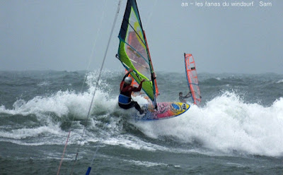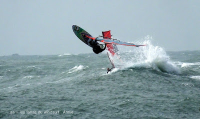 Dimanche, Cap d'Agde. Tous les voyants étaient au vert mais le vent ne sera pas aussi fort que prévu. Dans les 20 noeuds avec des molles et des rafales, super au niveau du Fort Brescou. DEs belles vagues comme toujours au Cap. Par contre la Chine aujourd'hui, je m'y attendais mais à ce point là !!! Beaucoup plus de planches que de kites, en fait tout le monde était là. Heureusement le matin c'était moins touffu mais plus gris, l'après midi le soleil a fait son apparition et le vent s'est un peu renforcer. Je tiens à signaler que les relevés Baston sont faux, idem pour le fameux jeudi où ils n'ont jamais annonçé plus de 20 noeuds alors qu'il y en avait 50!! En rentrant il est évident que le vent était plus fort ici contrairement aux prévisions, mais pour moi pas de regret, je me suis bien éclatée.