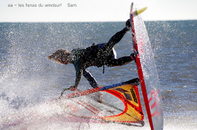 Jeudi, Le Rouët.Réveil 6h40, allez courage allons assister au lever du soleil , il y a du vent!! ce coup ci pas de nuage, notre astre généreux nous offre un spectacle sublime, malheureusement arrivés trop tard pour gréer à temps et essayer de passer devant lui, mais les images sont quand même magiques. Le vent lui au début est ouest et assez fort, il va petit à petit tourner nord-ouest pour finir plein nord avec un clapot désagréable et l'irrégularité bien connue. Beaucoup de monde et une super ambiance avec les vacanciers trop heureux de pouvoir naviguer, une tés belle session.