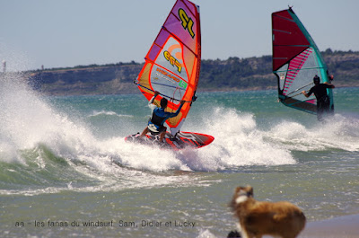 Lundi, le Rouet. Y a pas a dire en ce moment nous sommes gâtés. Alors qu'àprés une session comme hier tout semble fade, c'est journée nous a offert une session grandiose avec des vagues en prime et du vent fort,franchement là c'est Bizance. Beau soleil, belles couleurs, chaud, seul bémol à partir de 13h00 le vent va prendre un angle assez nord et les vagues vont disparaitre mais bon de 9h00 à 14h00 çà fait une session magnifique en plus on doit faire les courses, plus rien à manger comme au bon vieux temps.....