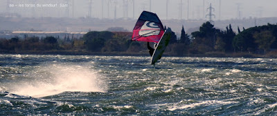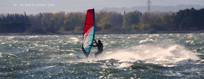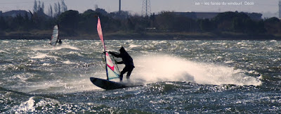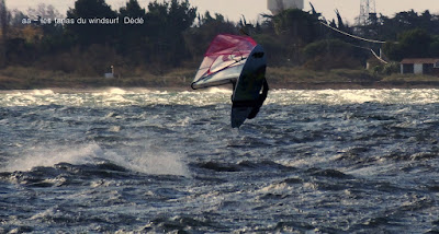 Jeudi,Coudalère. Le vent met du temps à arriver et la température à monter...enfin monter..maxi 8°, diminuant en fin de session avec pour effet ma première onglée. Pour le reste le nord continue à empoisonner nos sessions avec son irrégularité, ses minis rafales suivies de maxi molles, rien à faire, où sont nos conditions d'avant, ces magnifiques sessions ouest nord ouest avec de belles rampes?? en plus l'étang est trés bas ce qui n'arrange rien. Demain peut être encore Couda, après on devra se replier sur Eole avec des températures de 3° où va t'on??