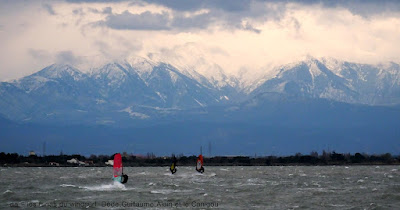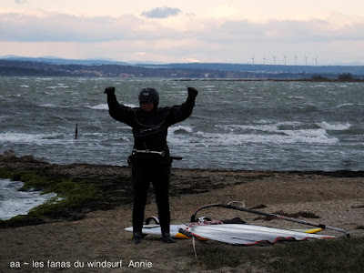 Vendredi,Coudalère. Limite de chez limite, 3.5° à l'abri du vent et 5.5° dans l'eau. On savait qu'on allait souffrir, surtout les mains comme toujours et cette lenteur, cette impression d'être au bord de tout lâcher...mais il ne faut pas hahaha. En plus pas un seul rayon de soleil d'ailleurs j'en profite pour excuser les photos notre vieux Fuji a eu du mal à supporter la luminosité crépusculaire et le froid sibérien. Du vent mais toujours assez nord et irrégulier, une fine équipe qui arrive à rendre ces conditions conviviales. Demain??qui vivra vèra...