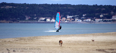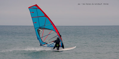 Jeudi, Le Rouet. 3 jours sans vent!!! qui a le plus souffert?? à voir dans la petite vidéo, le retour du petit loup à la plage...Perso j'avais bien souffert aussi mais moins qu'aujourd'hui, ça caille!!! 7°, gris, vent entre 12 et 18 noeuds, plan d'eau plat, gros matos. Quelques beaux plannings , à 13h00 ça tombe, je patiente une grosse demie-heure mais je suis gelée. On verra demain.