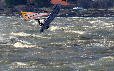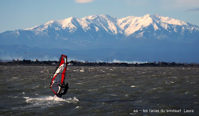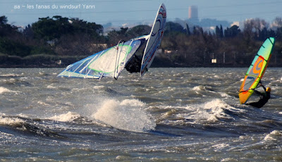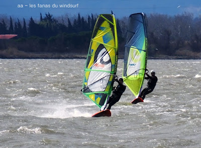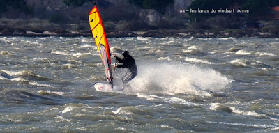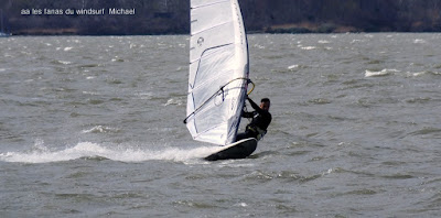 Dimanche, Coudalère. Encore une fois il fallait être matinale pour une session brêve mais top avec un beau plan d'eau, du vent pour 3.7, du soleil et relativement doux. Ensuite çà se gatte en tombant petit à petit, pour finir je décide de changer pour une 4.2 et 88 litres mais ce n'est même pas suffisant, la tram nous a quasi quitté, ais ce coup-ci on s'est régalé !!