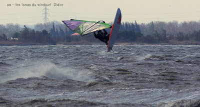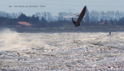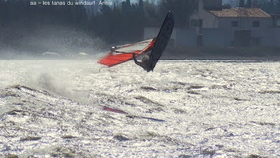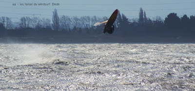 Mercredi, Coudalère. Déjà un peu moins violent qu'hier même si par moments c'était encore trés fort. Malheureusement un peu trop nord, mais le soleil était avec nous même si il n'est pas arrivé à faire monter la température au dessus de 9°. Super au début puis le nord prend un peu trop le pouvoir et rend le plan d'eau trés clapoteux et fatiguant.