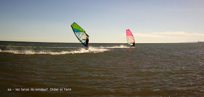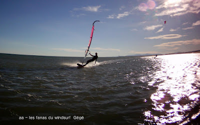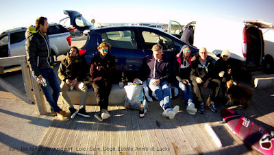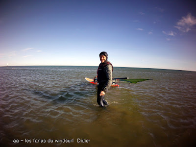 Lundi 31, PLN. Nous avions prévu d'aller à PLN et en plus un petit apéro entre copains était prévu donc pas d'hésitation. Il fait beau et doux un soleil intense presque dérangeant, le vent avoisine les 20 noeuds, tout çà me semble de bonne augure. Hélas nous sommes encore en 2018!! du coup d'appareil photo ne veut pas démarrer, HS! en plus le vent mollit et devient limite pour 4.7. Bon on assume et je vais faire des "photos" avec notre petite cam, désolée! par contre l'apéro était super sympa et à lui seul valait le déplacement. Allez demain on est en 2019!! bon réveillon à tous!!