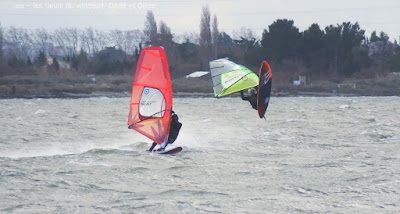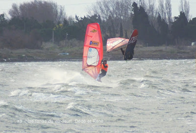 Lundi, Coudalère. La douceur s'en est allée, à peine 10° toute la journée, pas trop de soleil part bien sûr quand il devient pleine face et rend les photos impossibles, !! vent d'ouest très très irrégulier, eau marron, des algues, mais des bons moments quand mêmes.