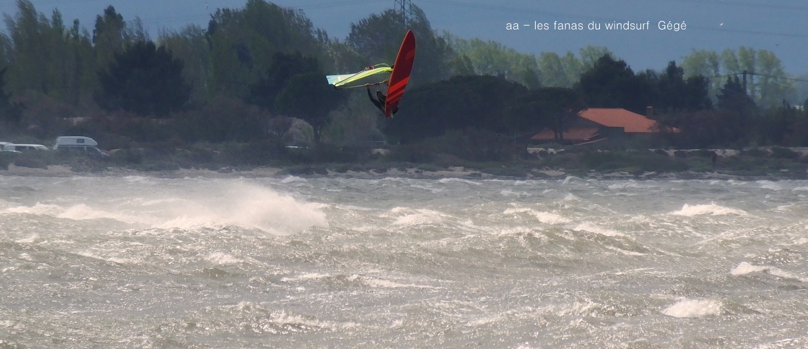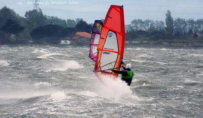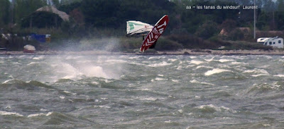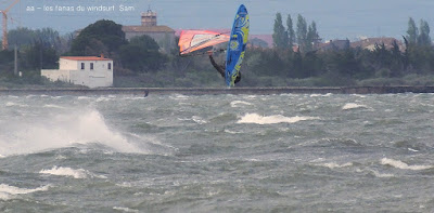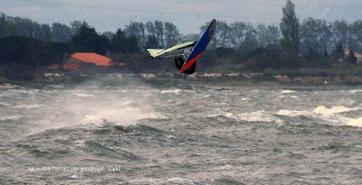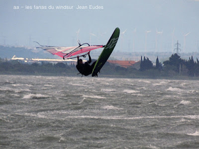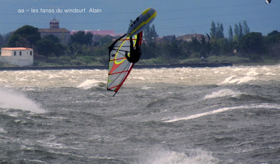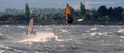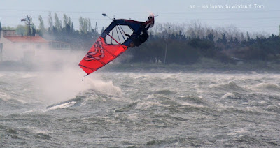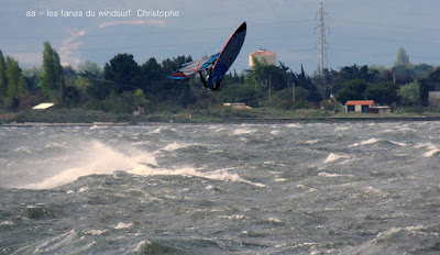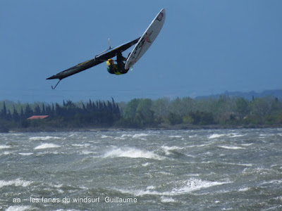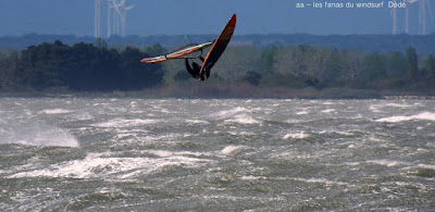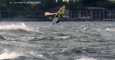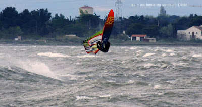 Jeudi, Coudalère. Un vrai de vrai ce Coudalère! du vent et même beaucoup de vent au point que j'aurais bien dû mettre ma 3.3! un plan d'eau magnifique par moments, le vent hésite entre le nord et l'ouest c qui ne rend pas la naviguation facile. Les K'd'or du jump sont là , nous avons essayé de prendre tous le monde mais ce n'était vraiment pas facile!! et demain ça recommence!